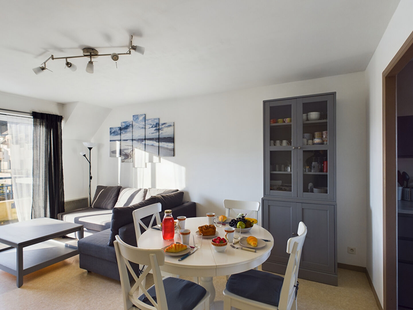 ... baigne la cuisine moderne (cafetière à dosette Senseo) et semi-ouverte. Cette dernière donne sur un...