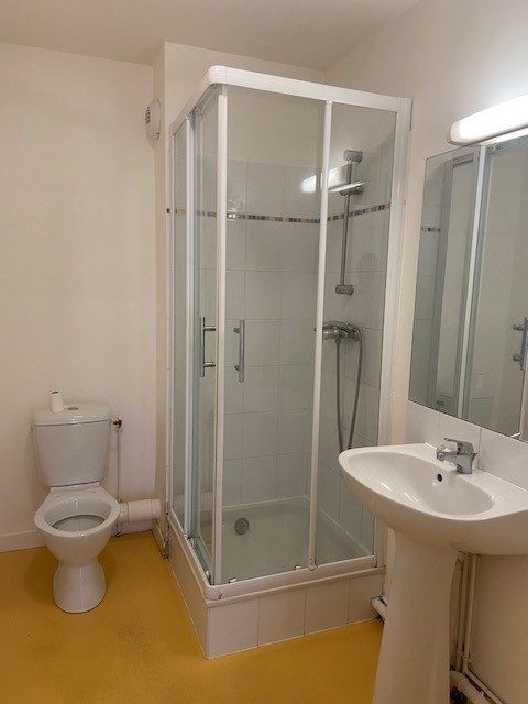 ...Une chambre avec un grand placard de rangement, une salle d'eau avec douche, wc...