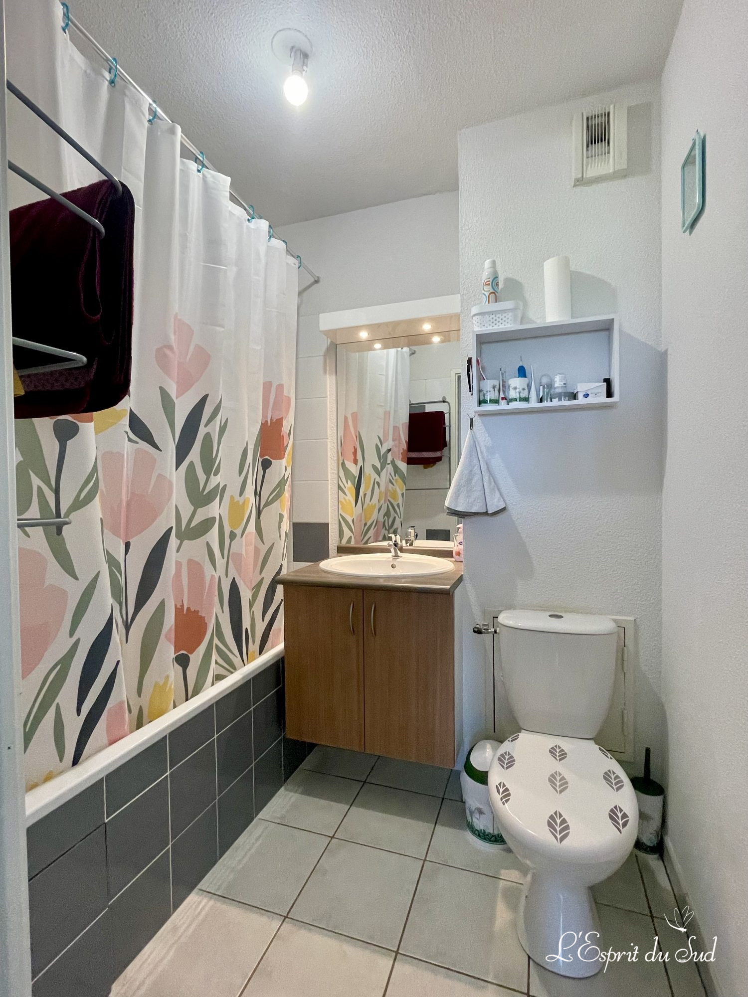 ...Une chambre, une salle de bains avec baignoire, vasque, meuble sous vasque et WC...