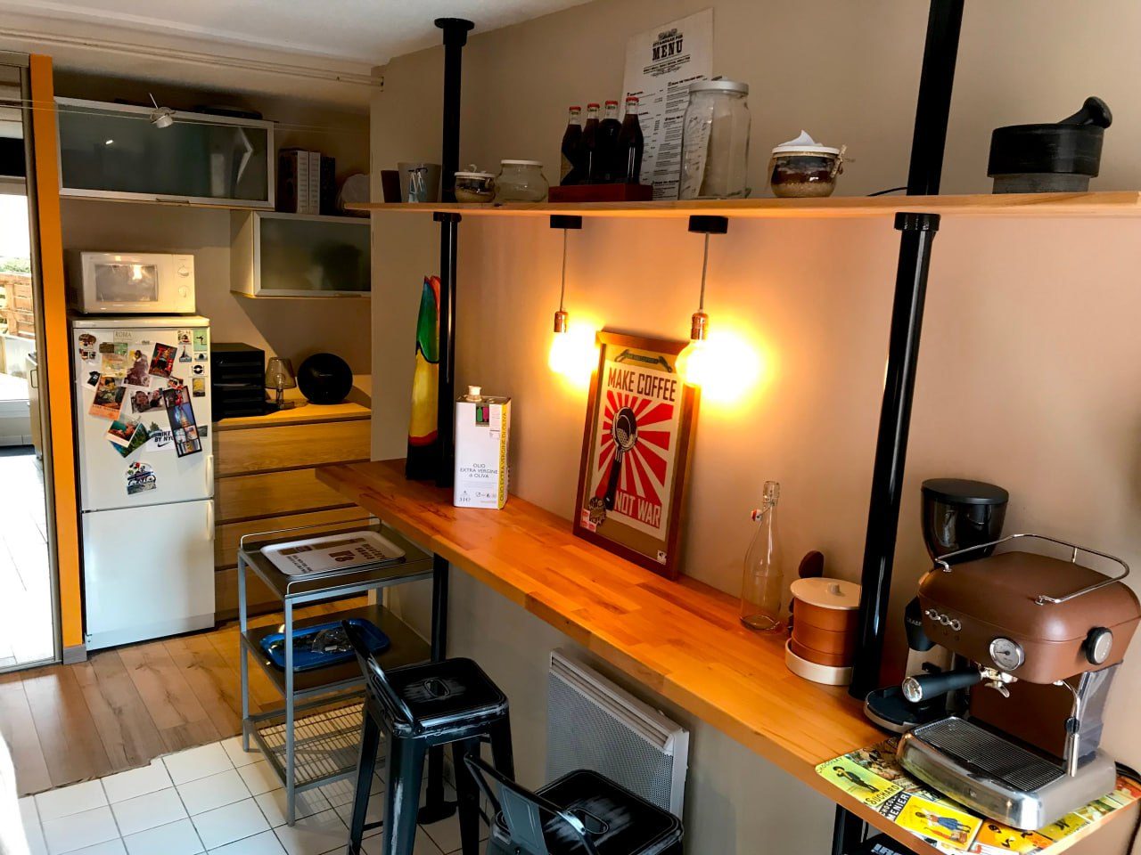 ...Studio composé d'une pièce principale, d'une kitchenette avec plaque électrique et réfrigérateur,...
