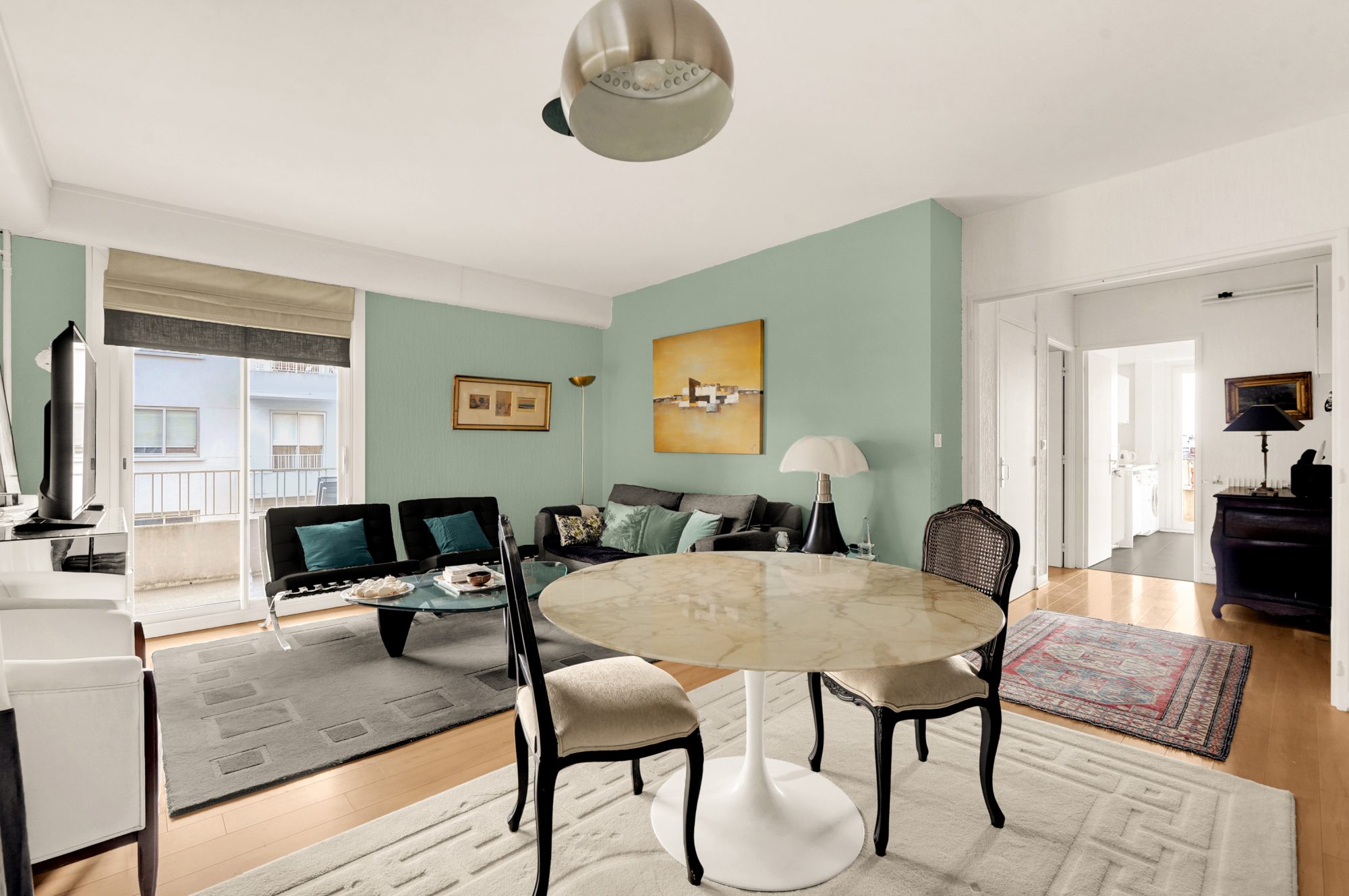 ...Fonctionnel, l'appartement est traversant avec deux grandes terrasses donnant sur des espaces...