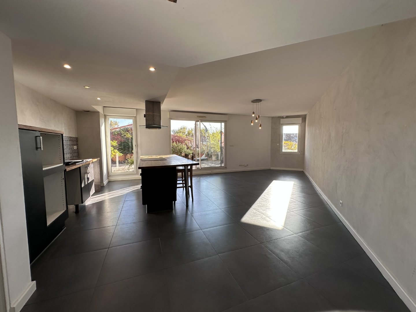 ...Surface agencement : Niveau principal : Grande pièce à vivre lumineuse avec cuisine...