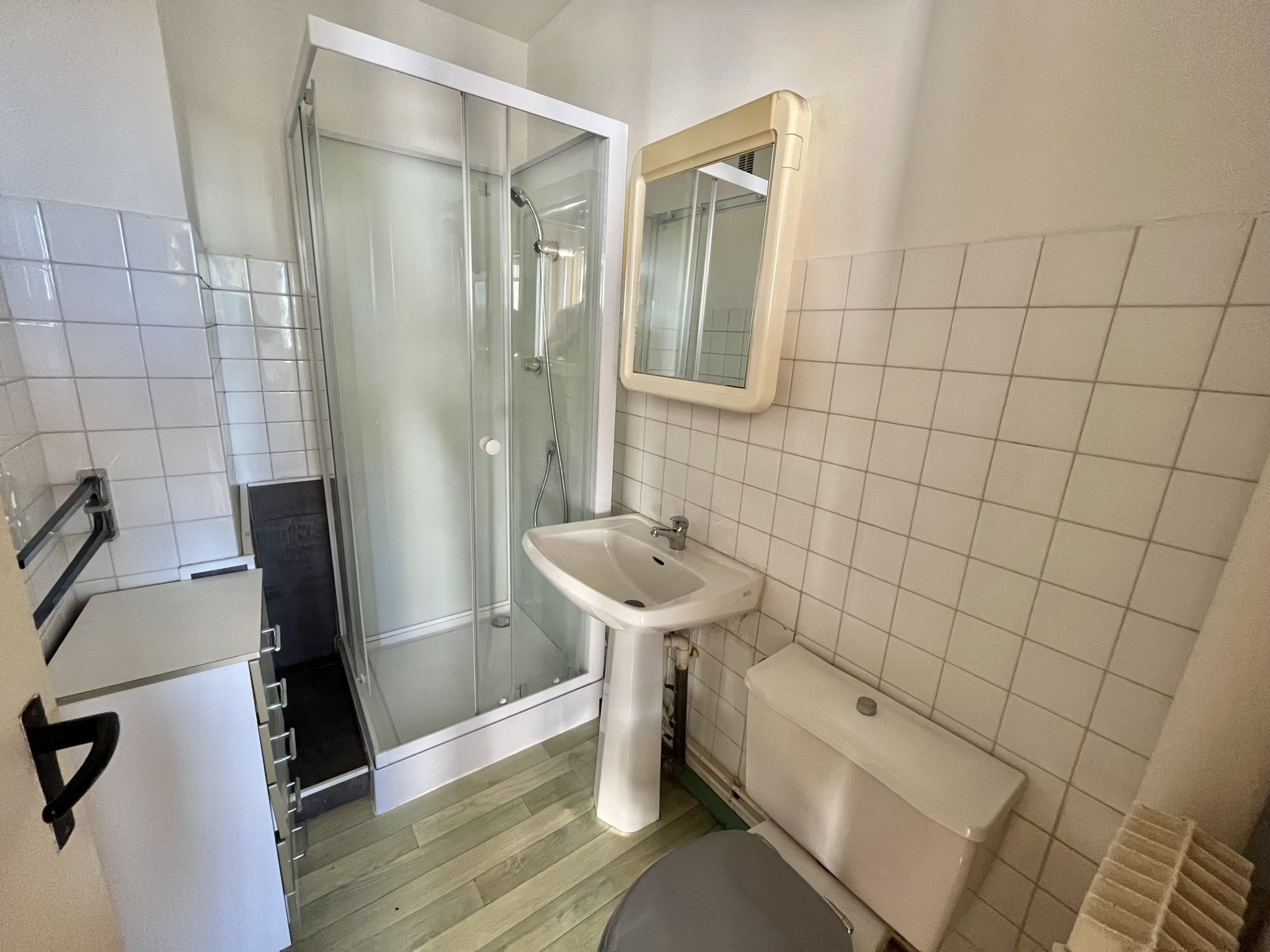 ... d'une salle d'eau récente équipée d'un meuble vasque et douche, deux chambres dont une avec rangeme...