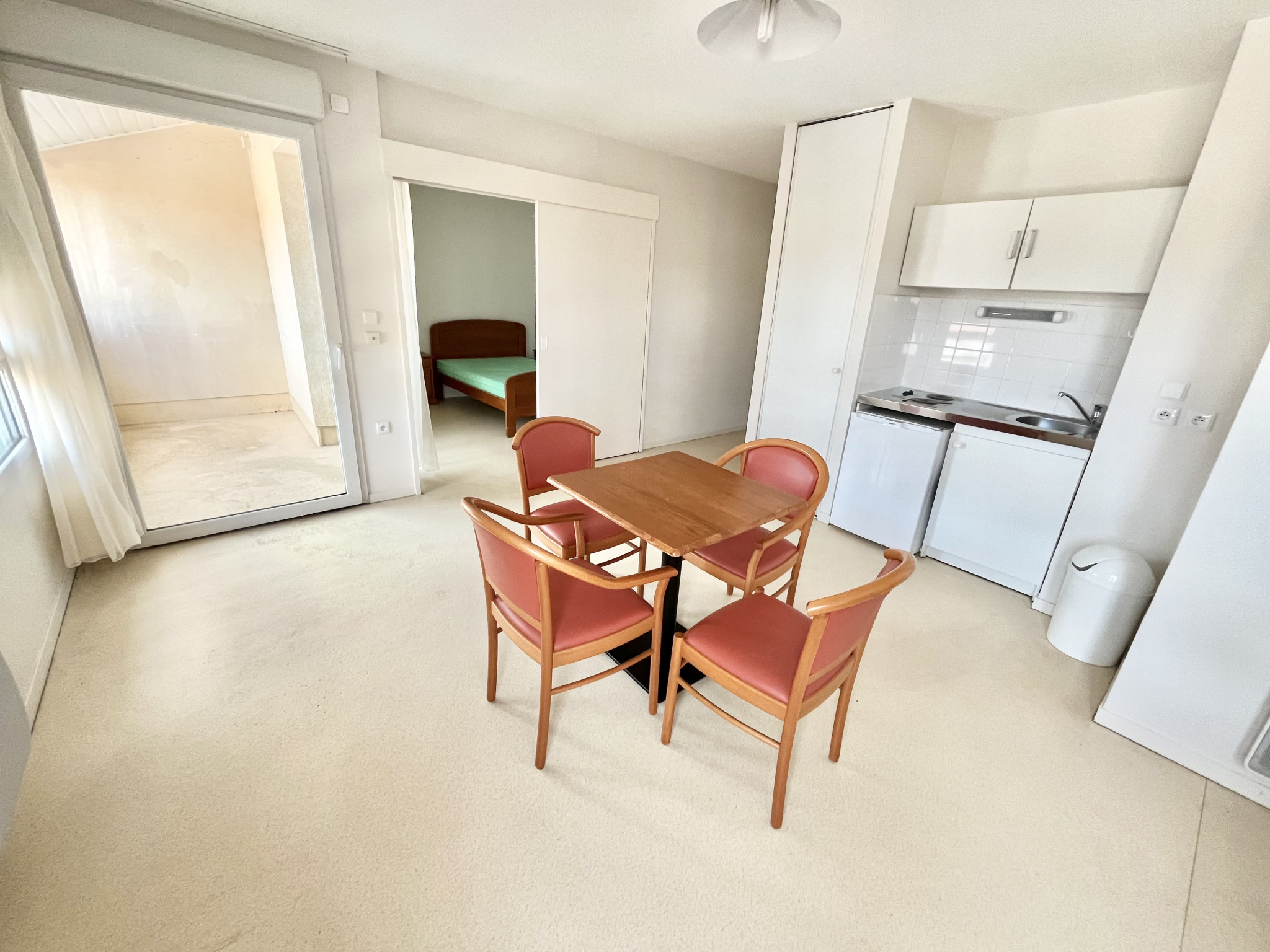 ... 2 pièces meublé récent, la pièce de vie ainsi que la chambre sont ouvertes sur un balcon avec porte...