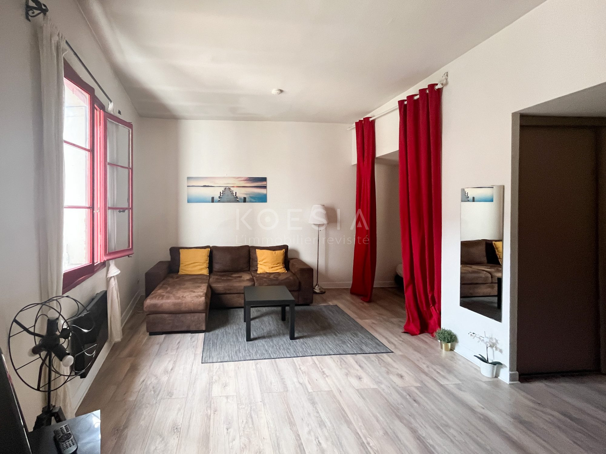 ...Il se compose d'un séjour avec cuisine ouverte, de deux chambres, d'une salle de bain, WC séparés...