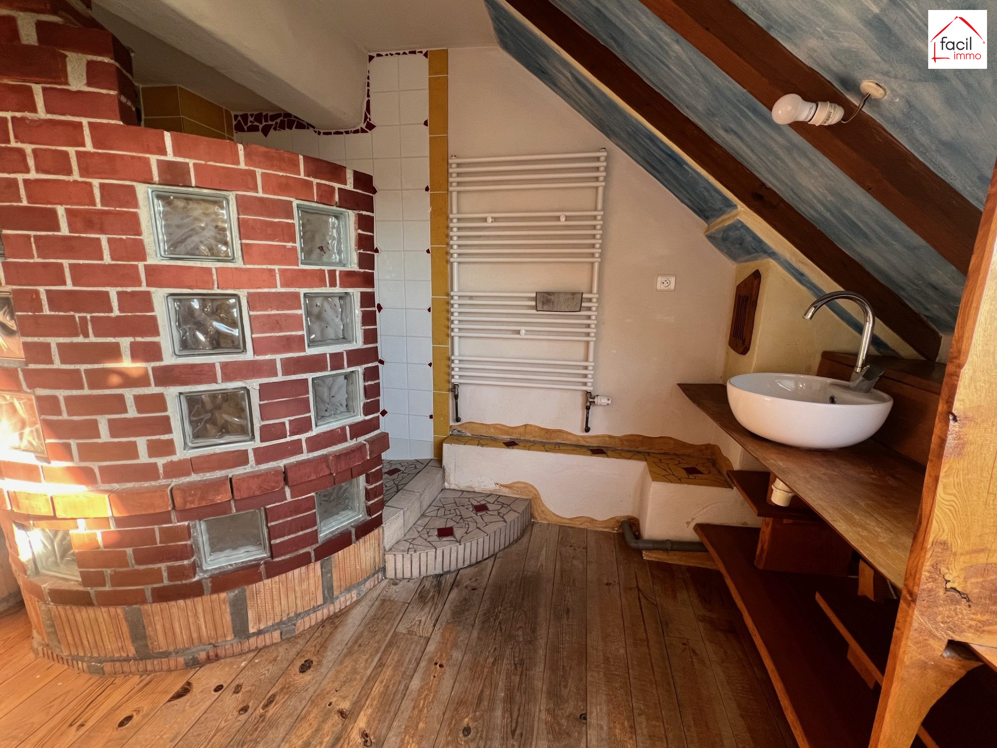 ...- A l'étage : 1 chambre et une salle de bain avec WC...