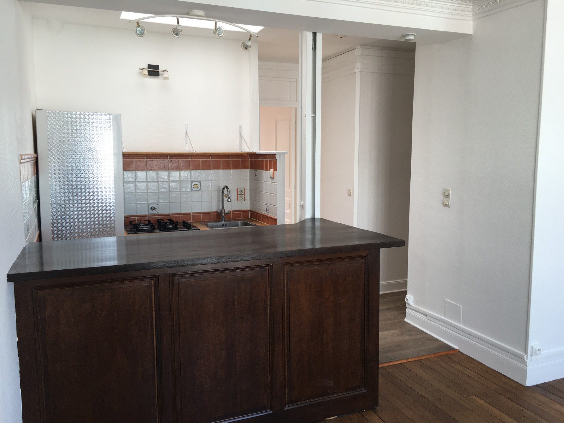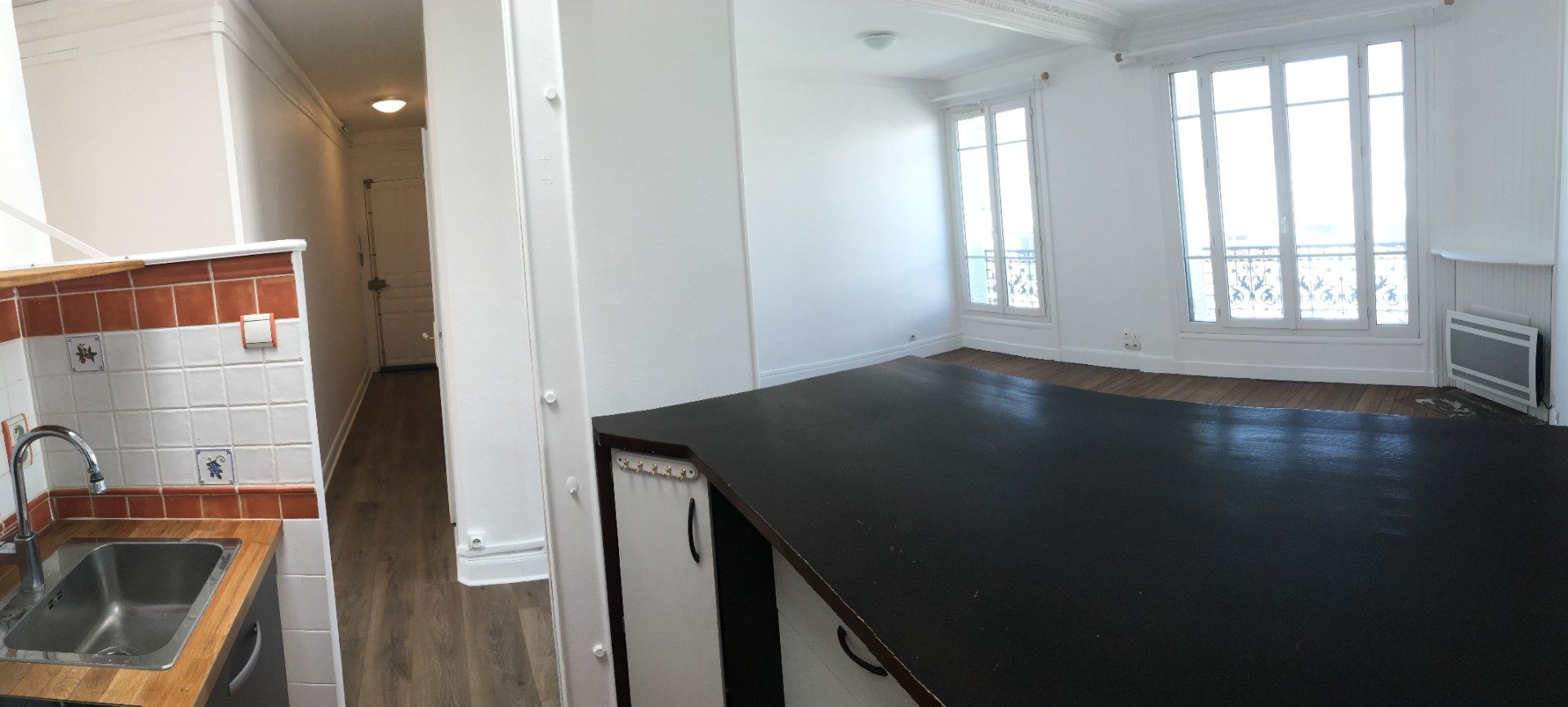... une entrée avec dressing, un séjour , une chambre , une cuisine aménagée et équipée (un four, plaq...