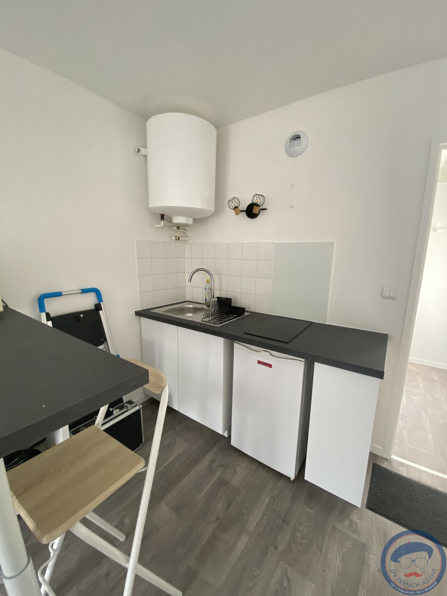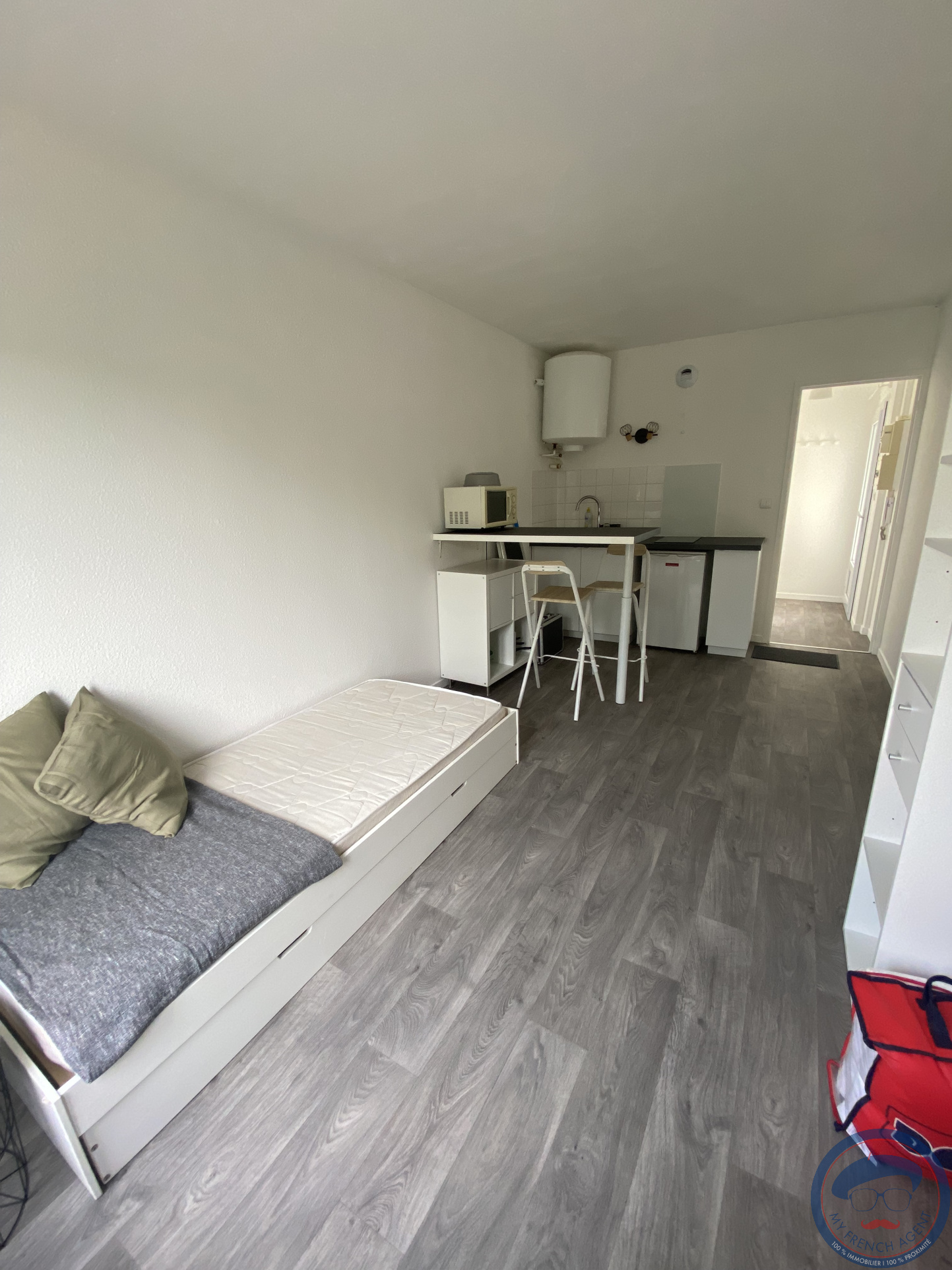 ...Il comprend une entrée avec rangements, une pièce principale avec une kitchenette ouverte équipée...