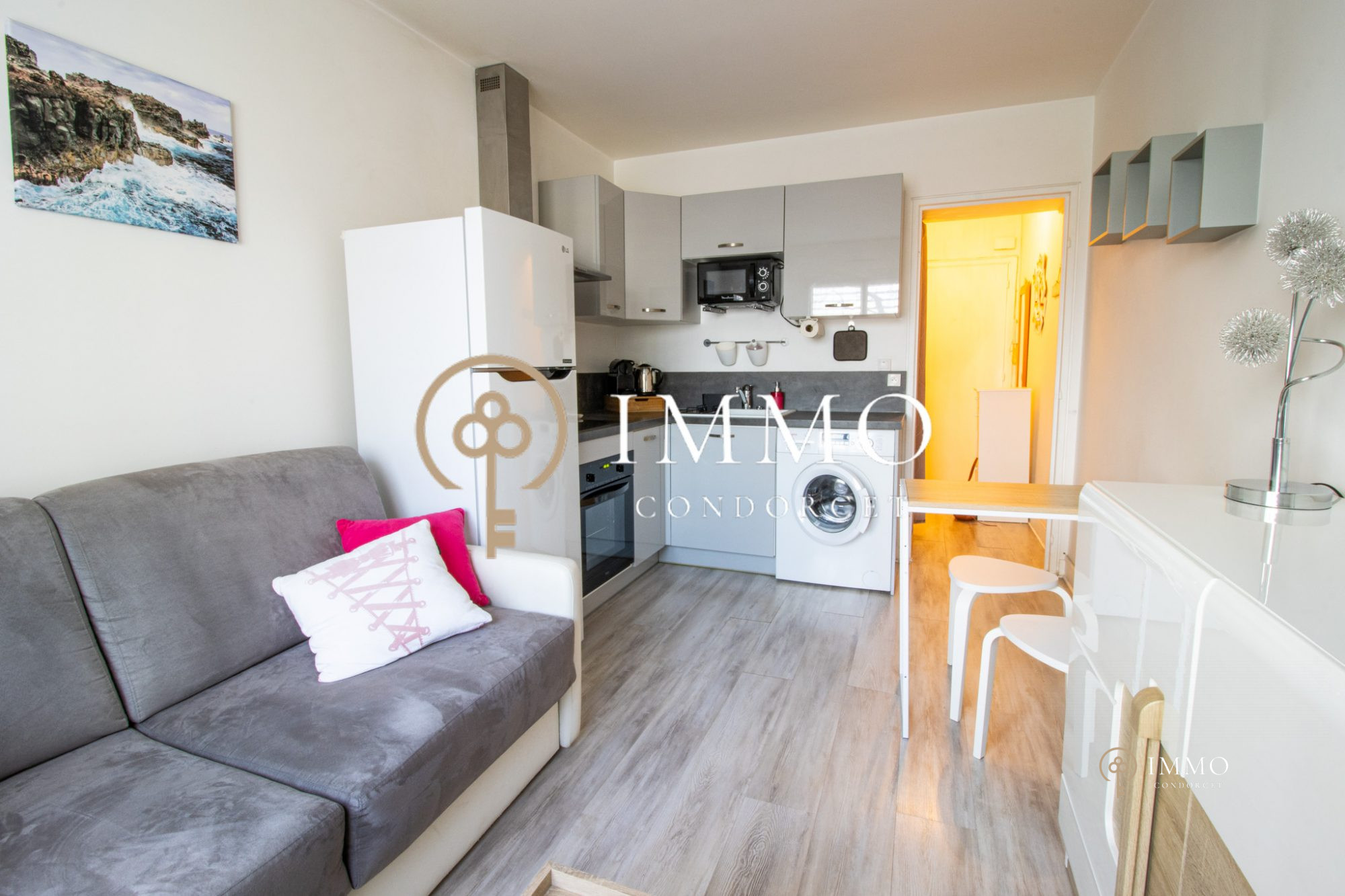 ...Il se compose d'une entrée desservant une salle d'eau avec WC, cuisine équipée ouverte sur la...