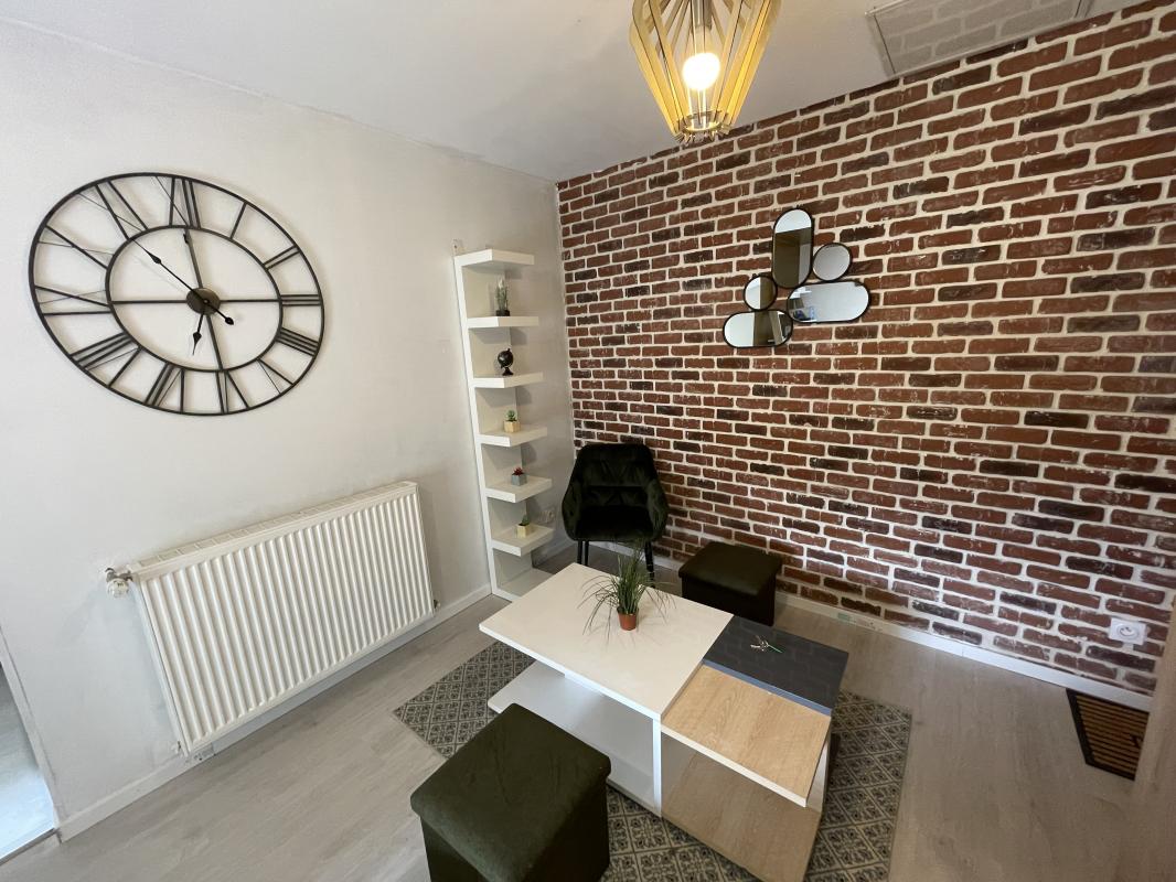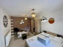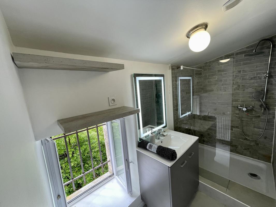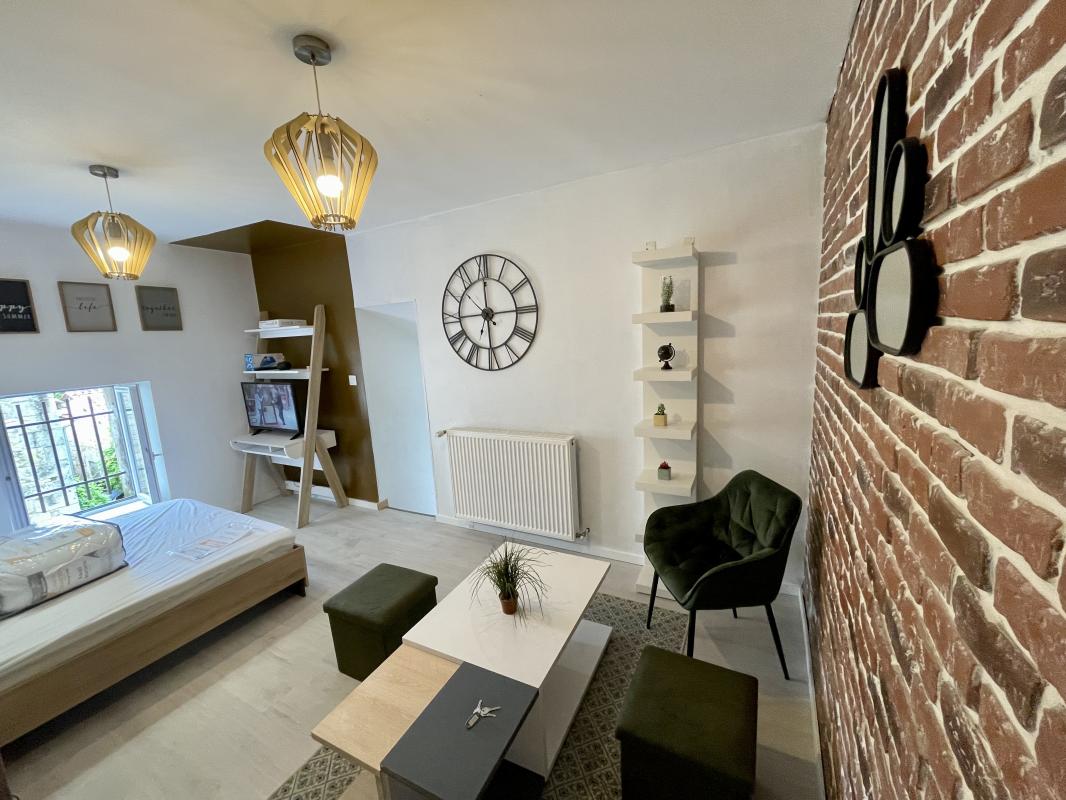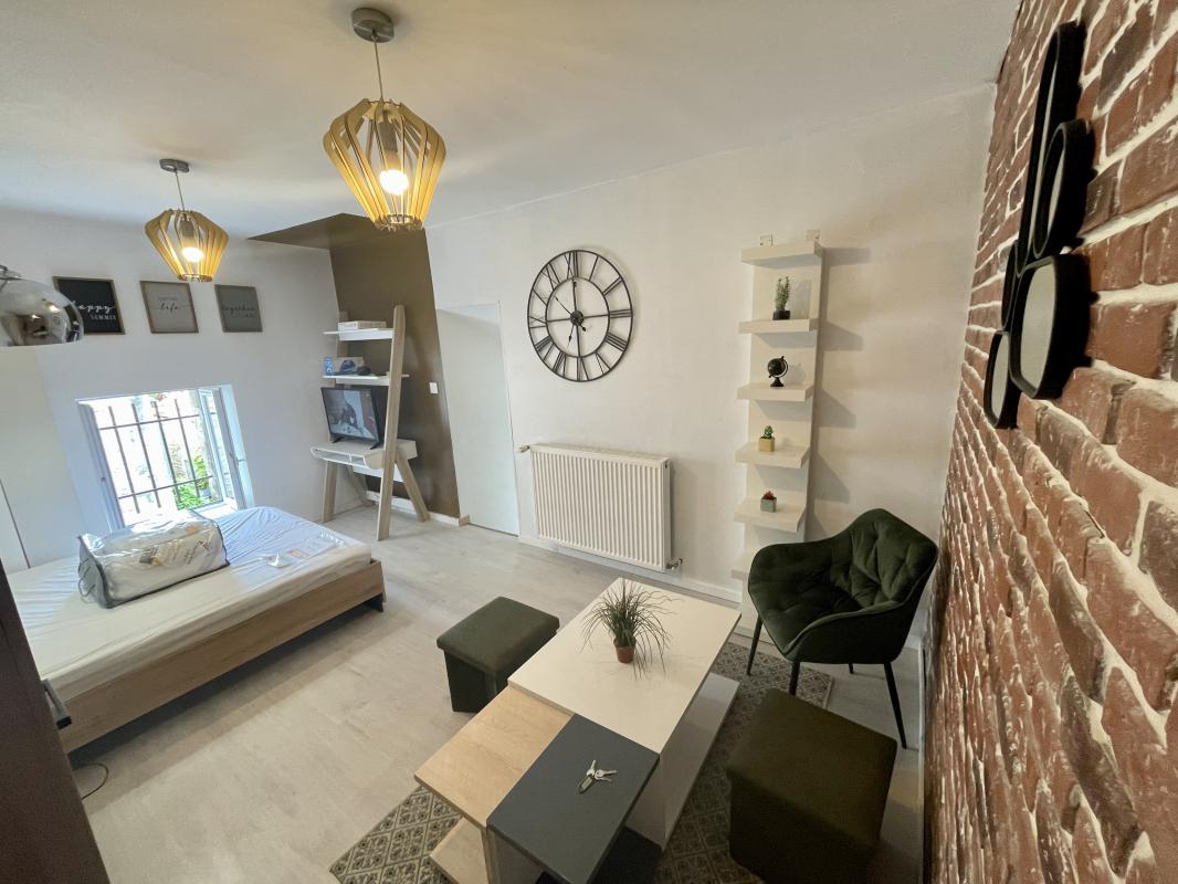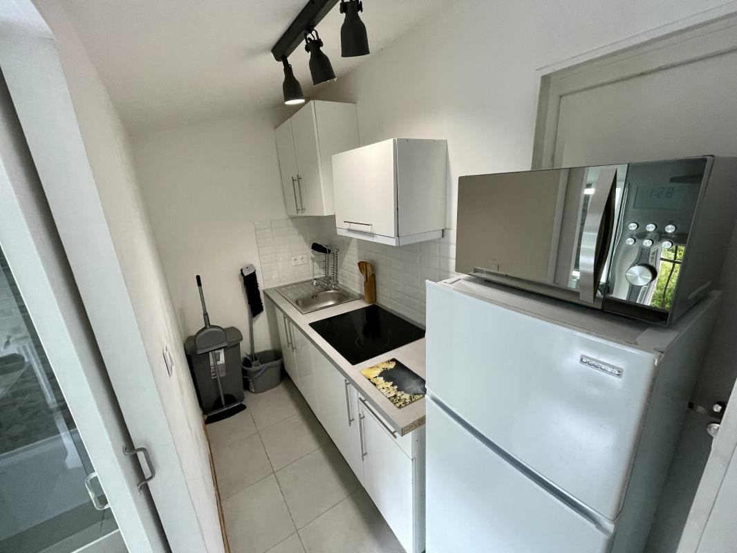 ...Il comprend : une partie séjour avec coin cuisine aménagée et équipée (plaques et réfrigérateur),...