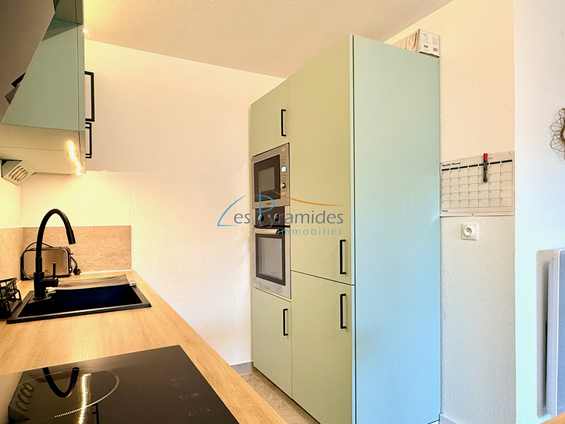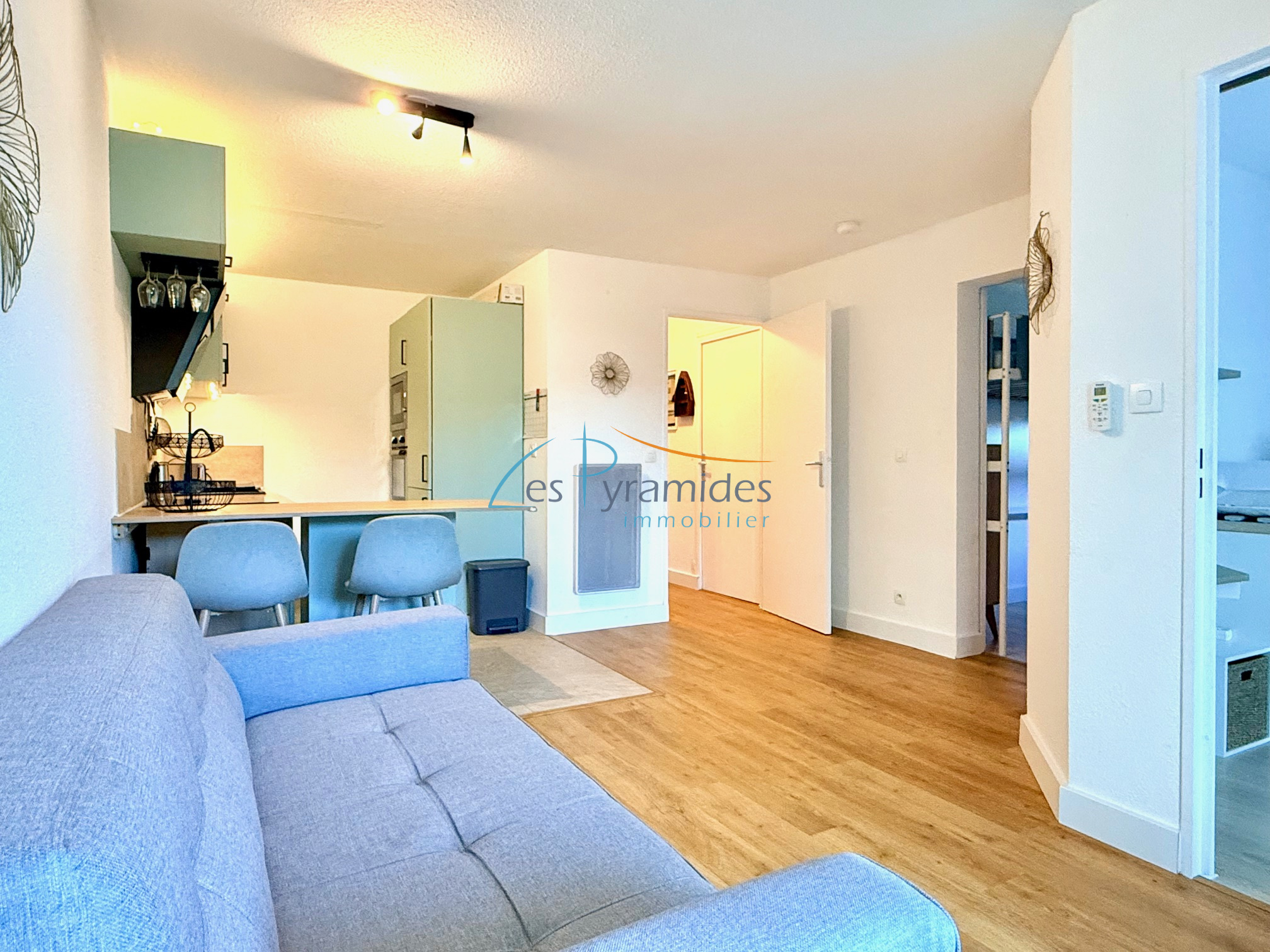 ...Entrée avec placard, pièce principale avec belle cuisine équipée, chambre avec lit double, cabine...