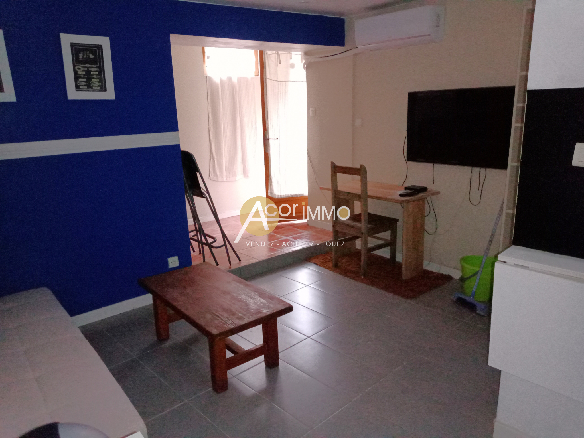 ...28m2 comprenant une entrée, une pièce principale avec un coin cuisine, un balcon, une salle d'eau...