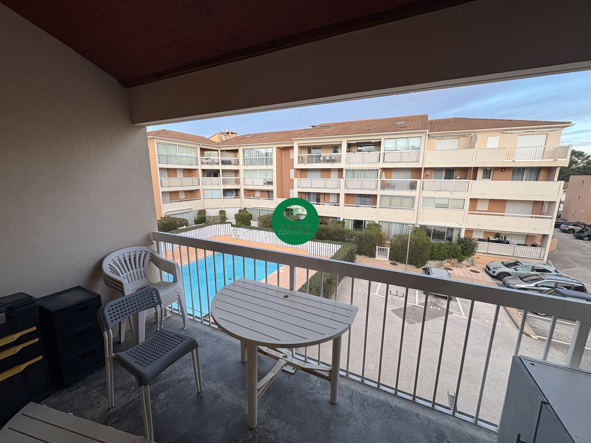 ...Au sein du'une residence fermée avec piscine, l'appartement se compose d'une entrée avec placard,...