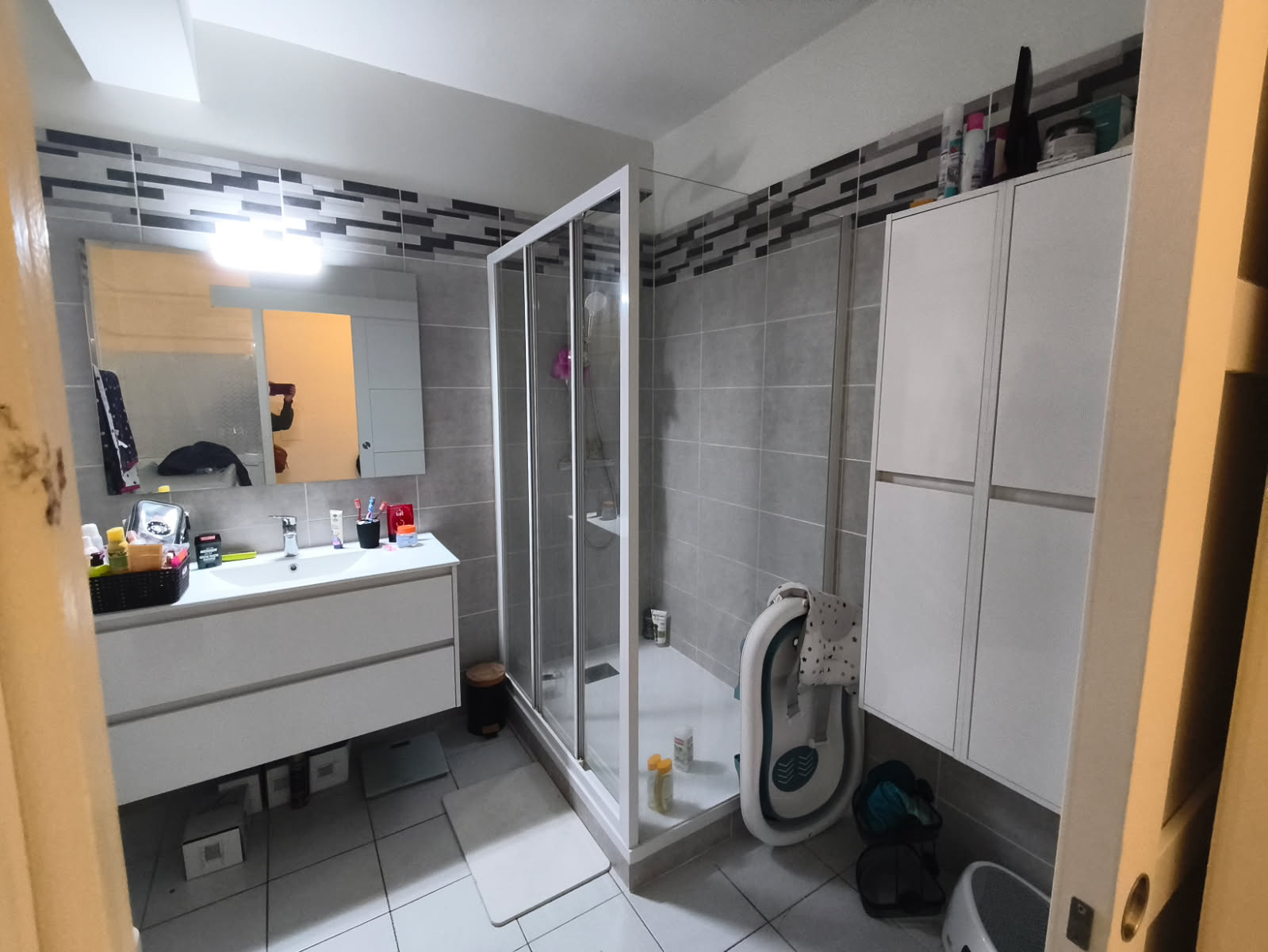 ...L'appartement comprend : une entrée aménagée, une cuisine séparée aménagée, un cellier, un grand...