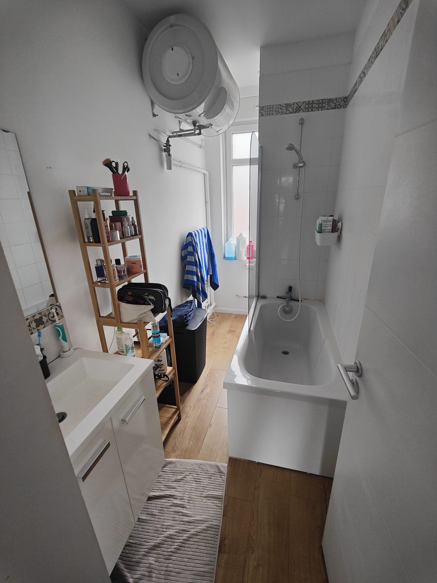 ... parquetée avec cuisine équipée (plaques de cuisson, frigo, hotte et meubles, emplacement machine à ...