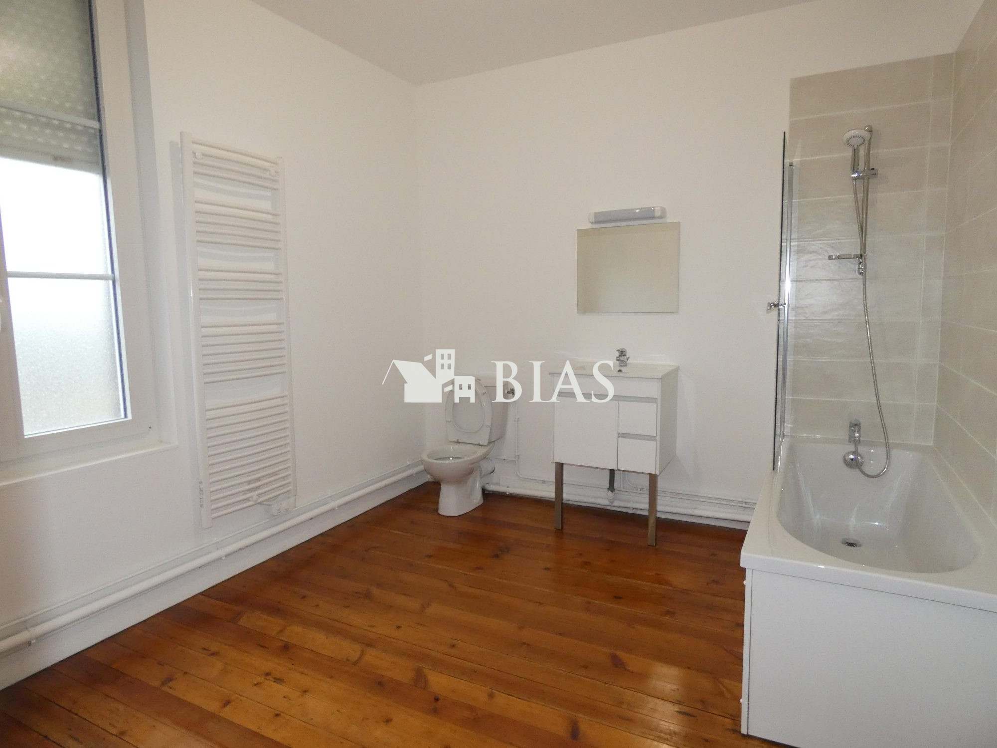 ...61m² au 1er étage comprenant : Entrée, cuisine, séjour, salle de bains avec wc, 2 chambres...
