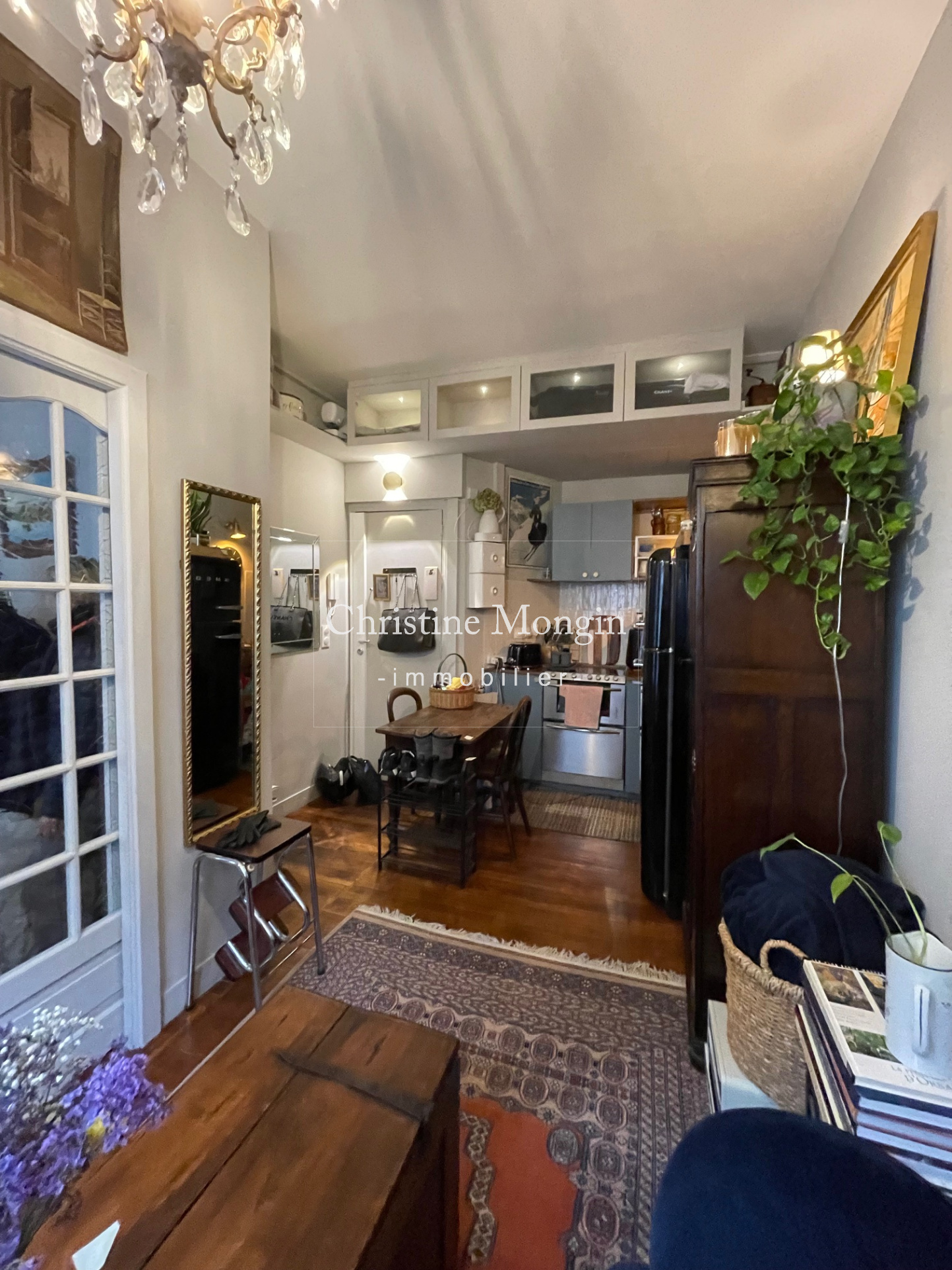 ...La porte d'entrée de ce logement s'ouvre sur la pièce de vie de ce studio composée d'une cuisine...