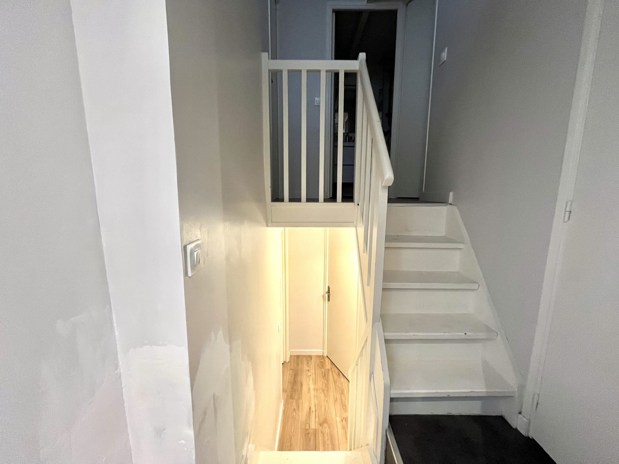 ... parqueté avec cuisine équipée (plaques, four, hotte, rangements, branchement machine à laver).À l'é...