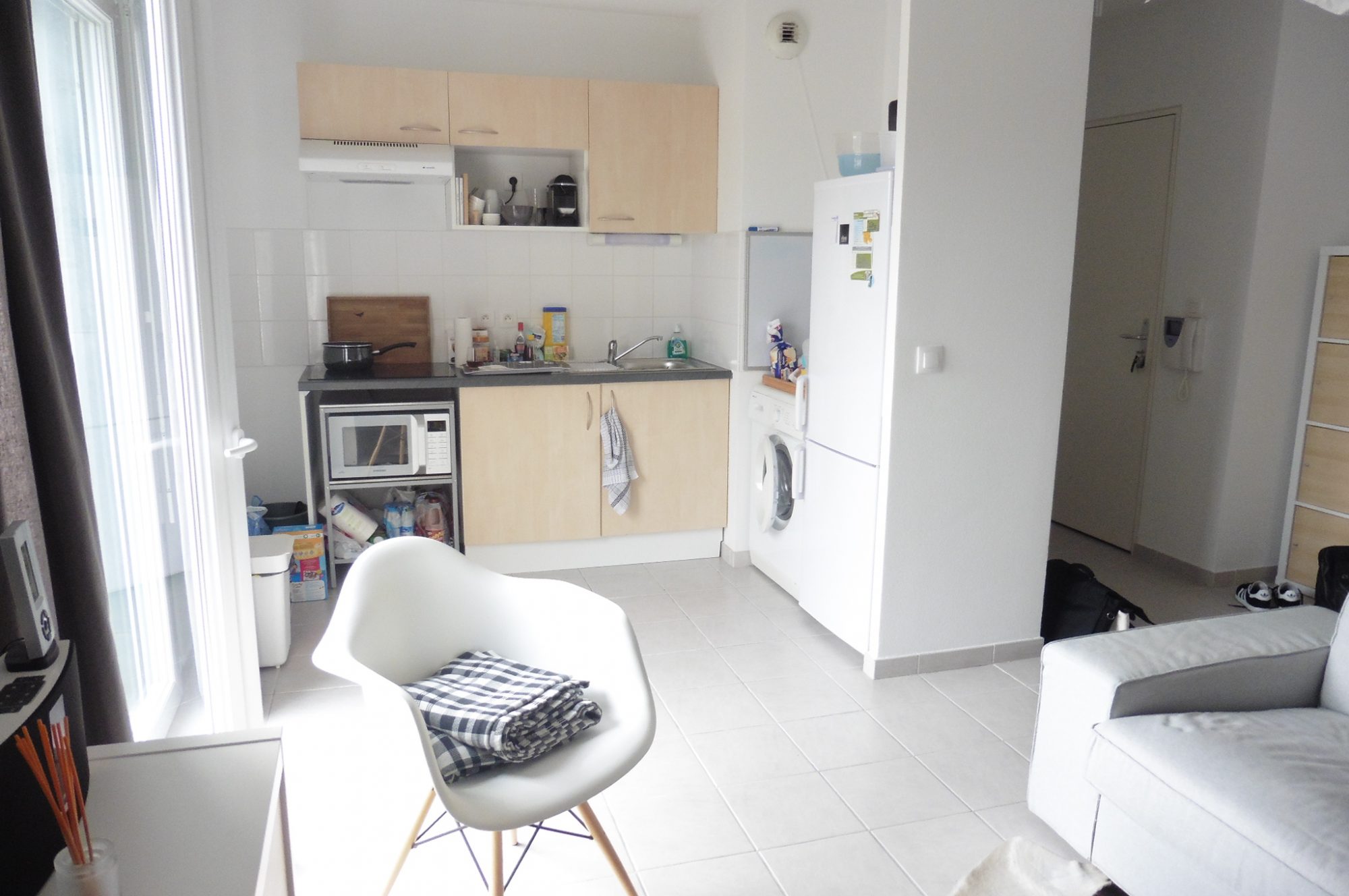 ...Appartement de type 1 / studio meublé à louer offrant : Une pièce de vie (avec clic-clac, bureau,...