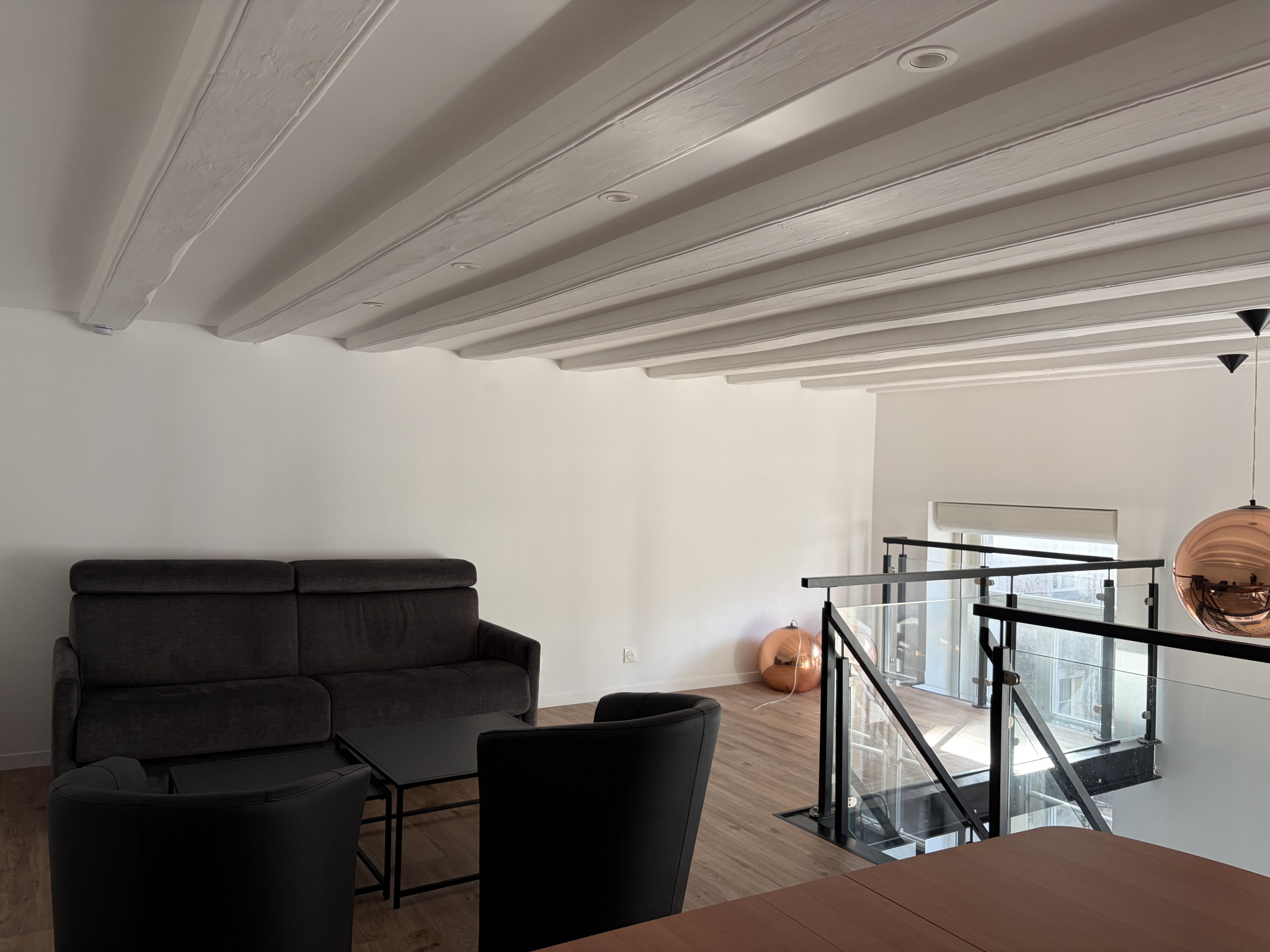...Au premier niveau, vous trouverez une belle pièces de vie climatisée, avec cuisine séparé aménagé...