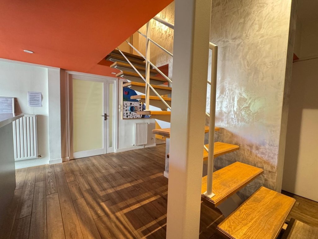 ...Au 2er étage, vous disposez d'une entrée, une grande pièce de vie lumineuse, une cuisine ouverte...