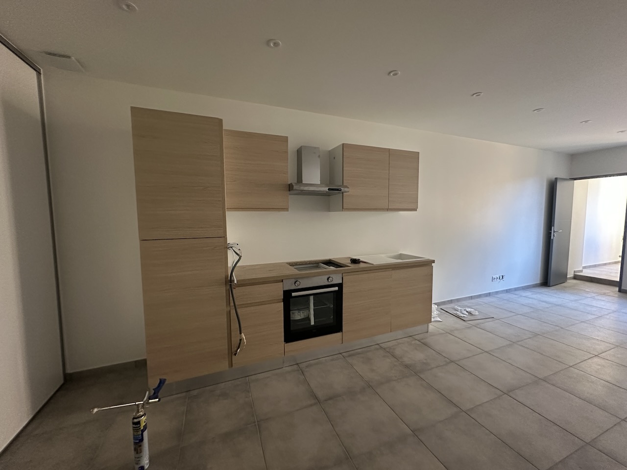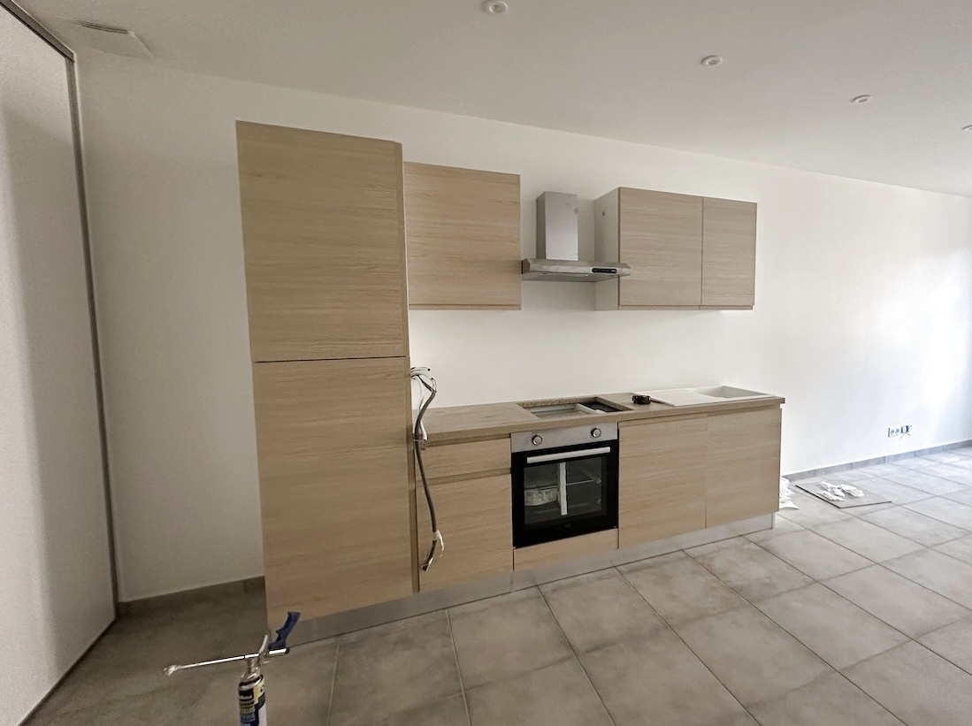 Entrée, parquet Séjour avec coin cuisine aménagée, parquet et carrelage, 30 m2 Salle d'eau, douche...