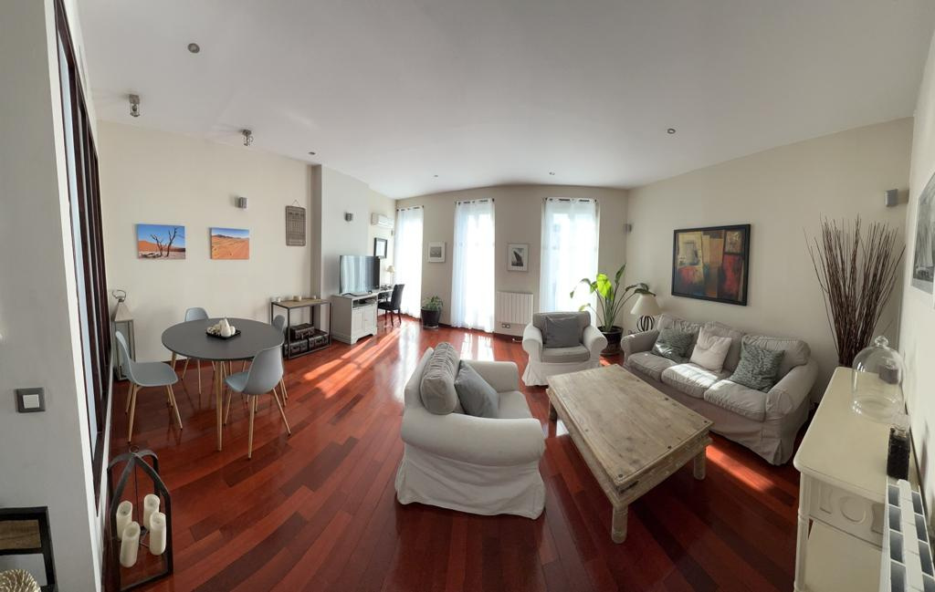 ...Ce loft moderne et élégant est composé du séjour avec canapé, de la cuisine ouverte équipée, de...