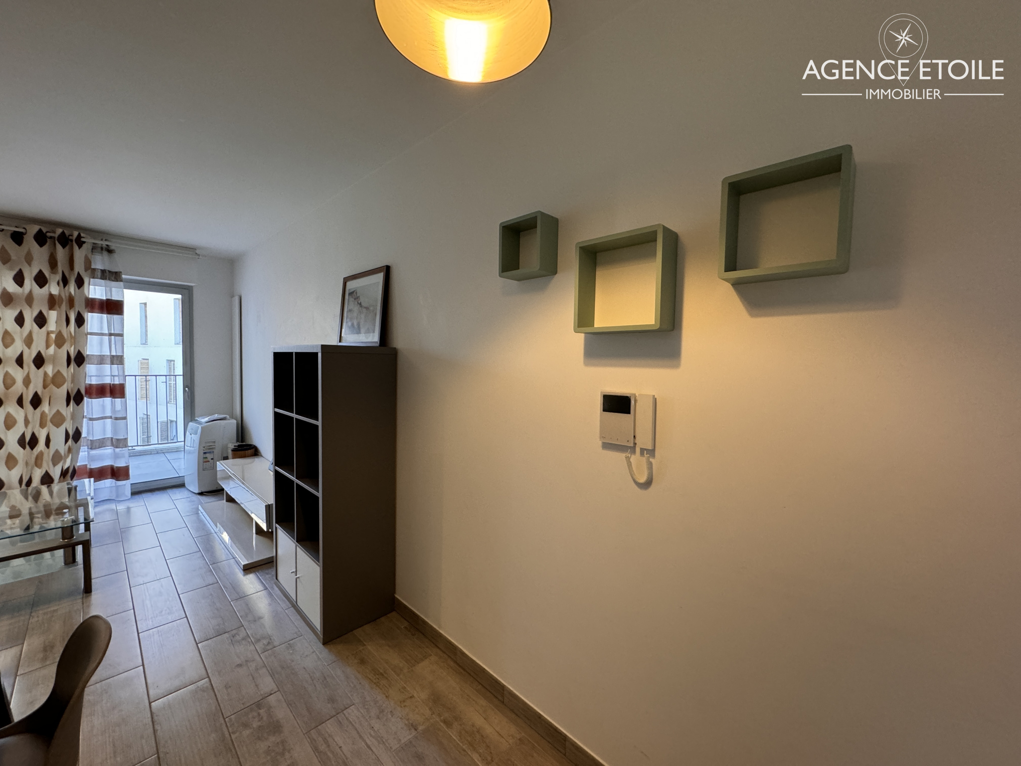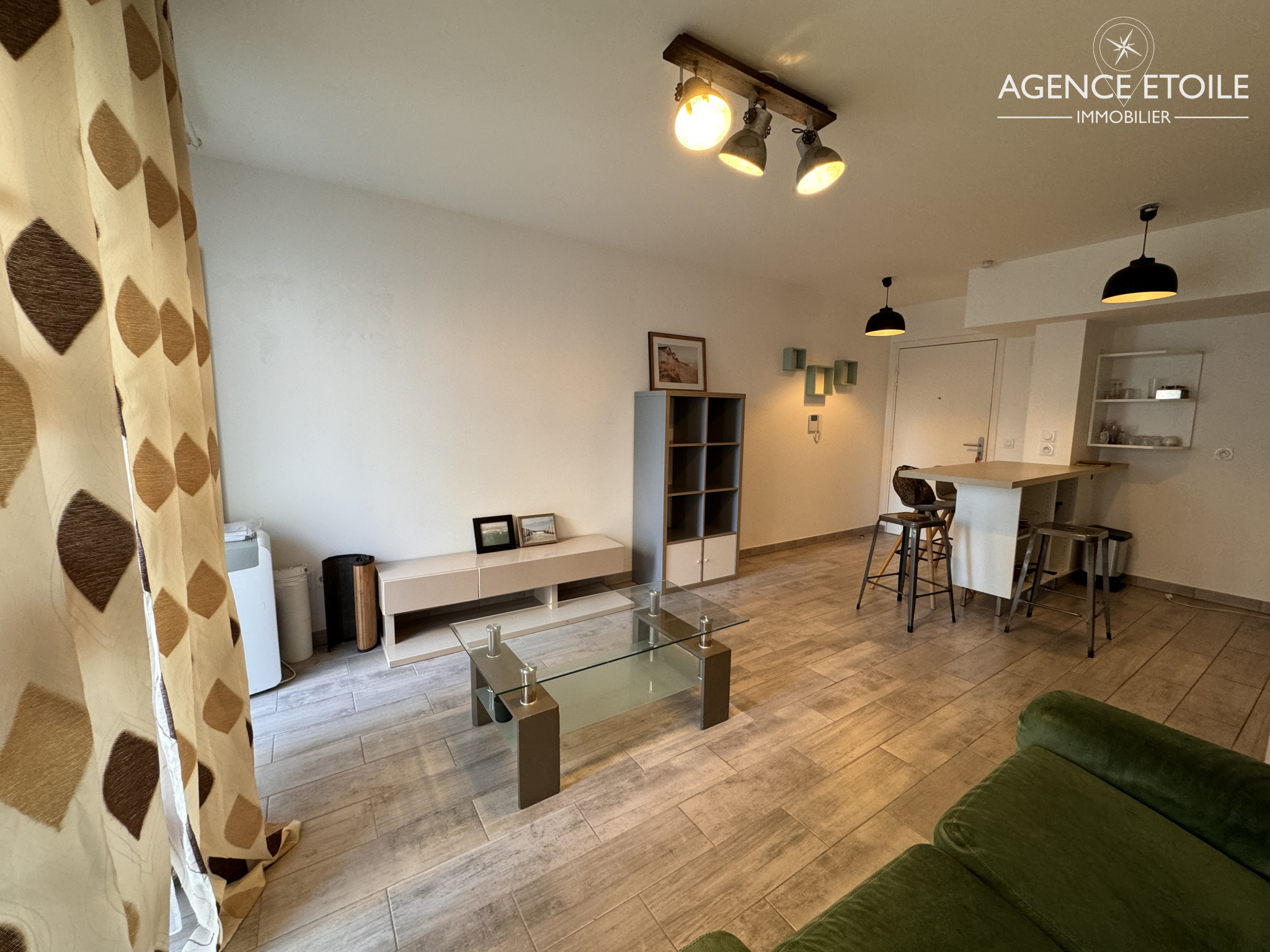 ...Il dispose d'un hall d'entrée desservant la salle de douche et le séjour avec sa cuisine ouverte...