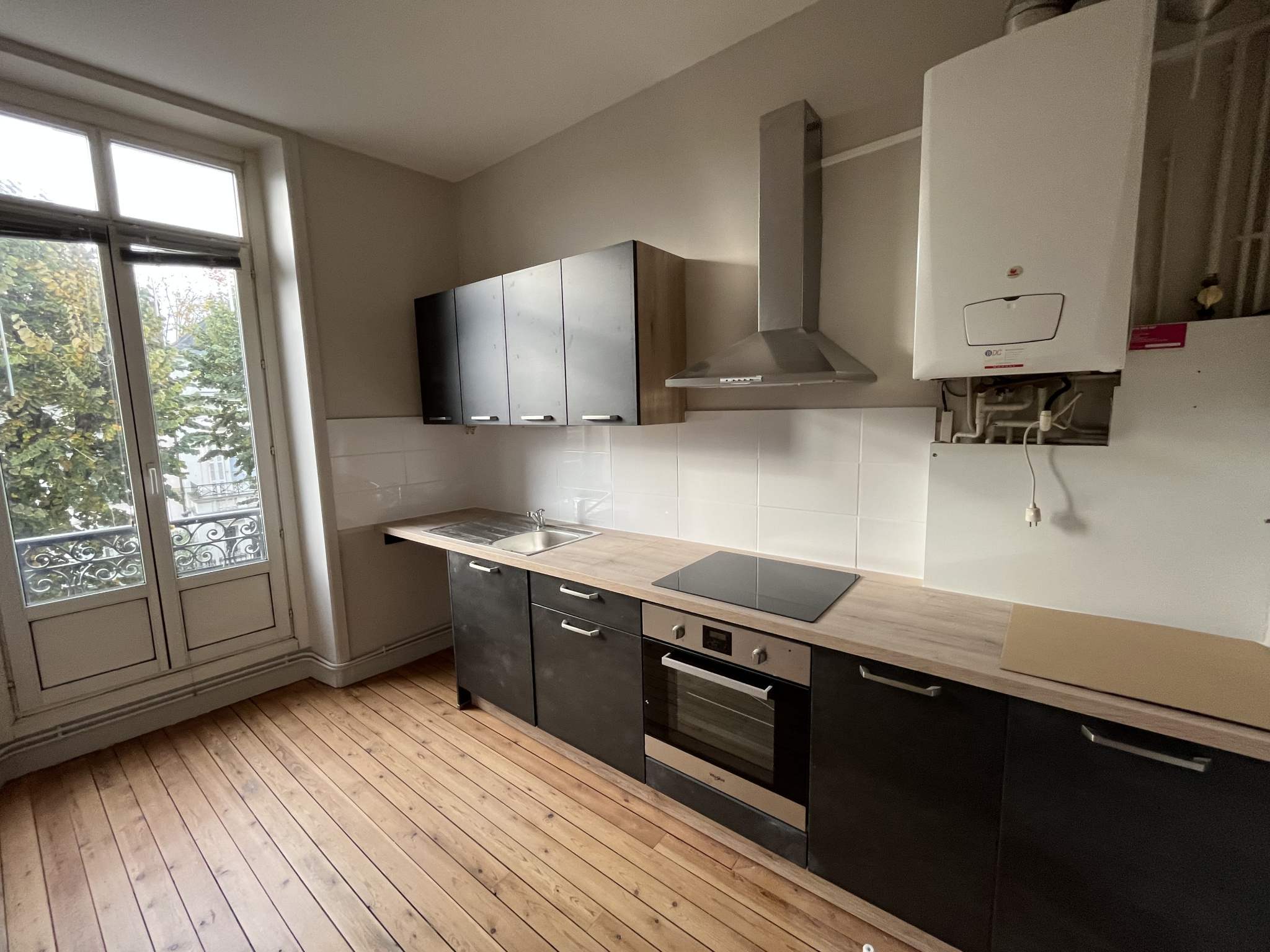 ...Entièrement refait à neuf comprenant une grande entrée avec placard aménagé et un WC, une pièce...