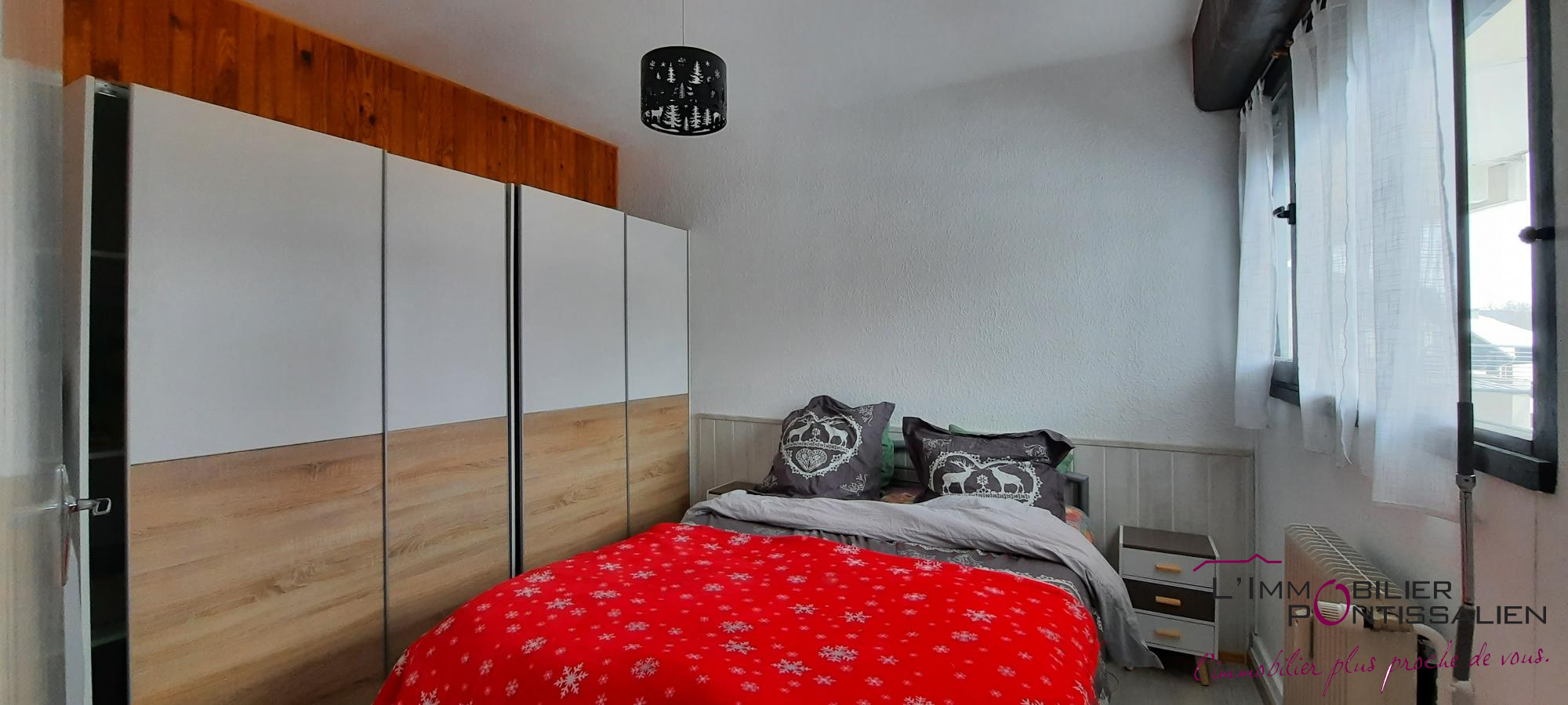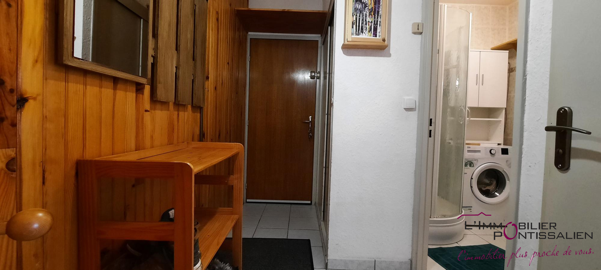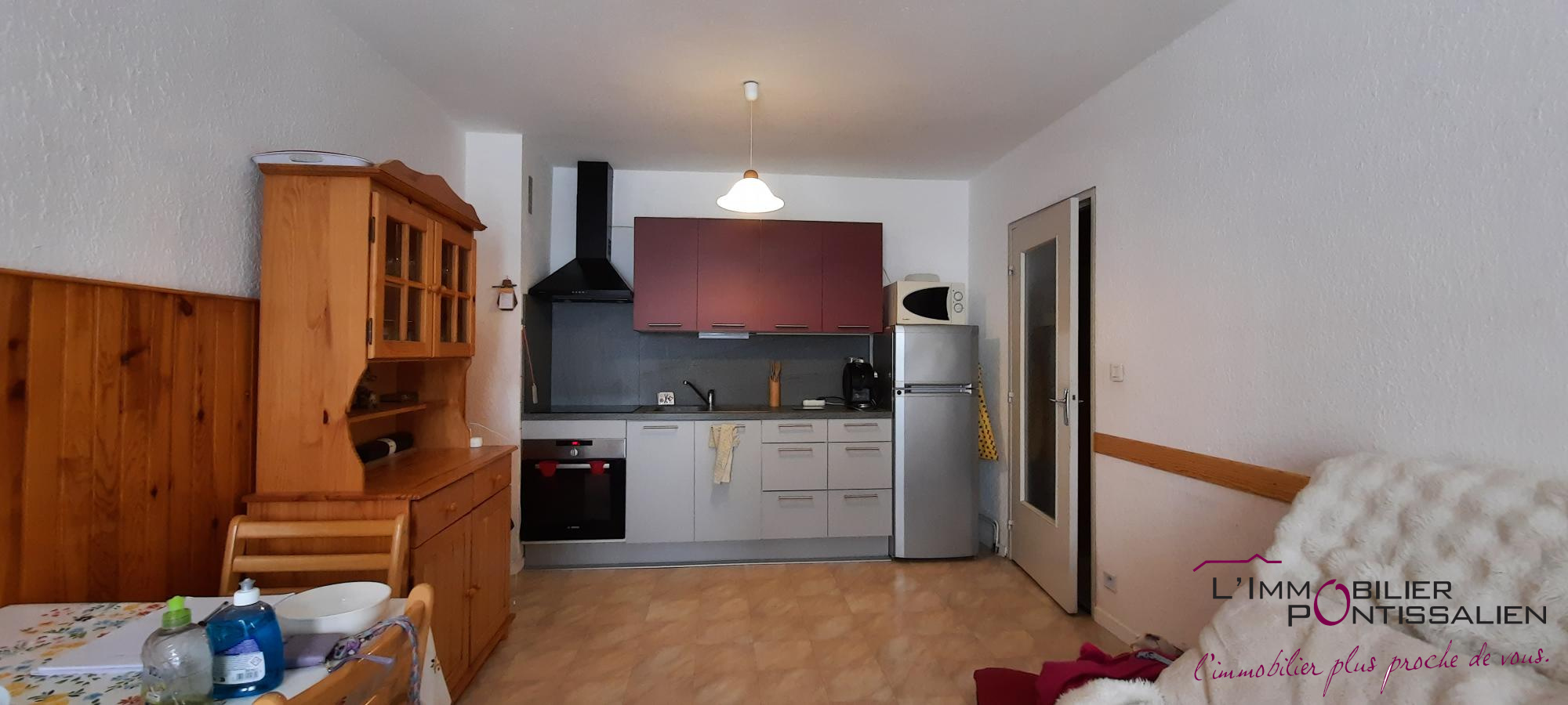 ...Il comprend une entrée avec placards, une cuisine ouverte sur séjour, une chambre, une salle...