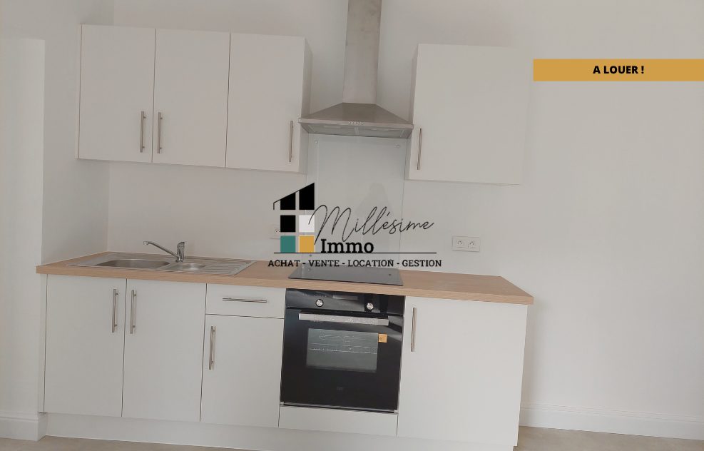 ... T2/3 comprenant : cuisine équipée ouverte sur séjour avec accès terrasse, 1 chambre, 1 bureau, sall...