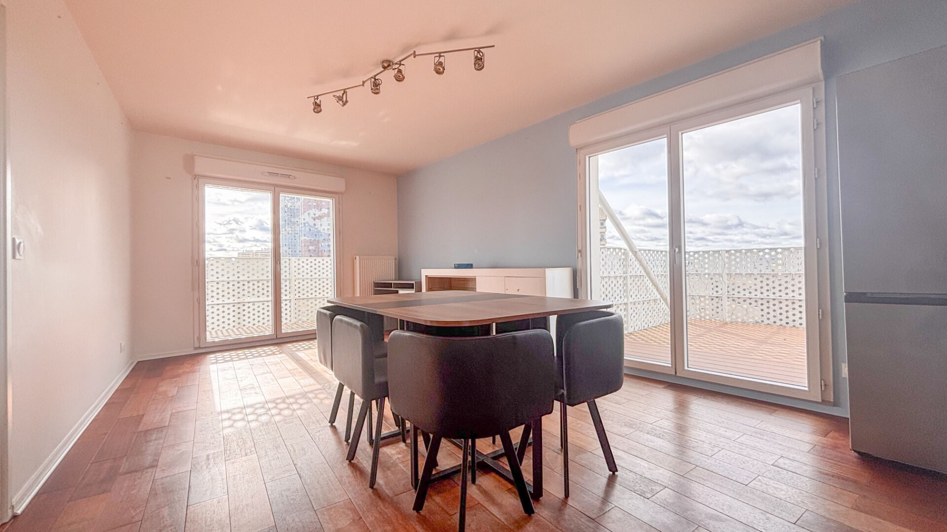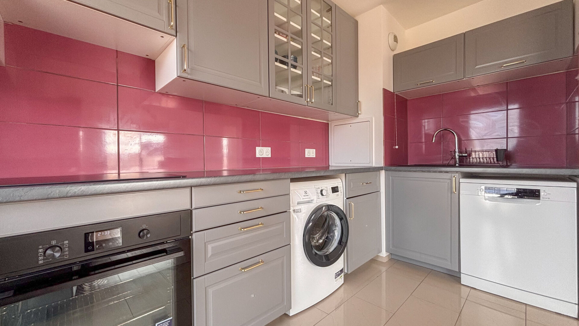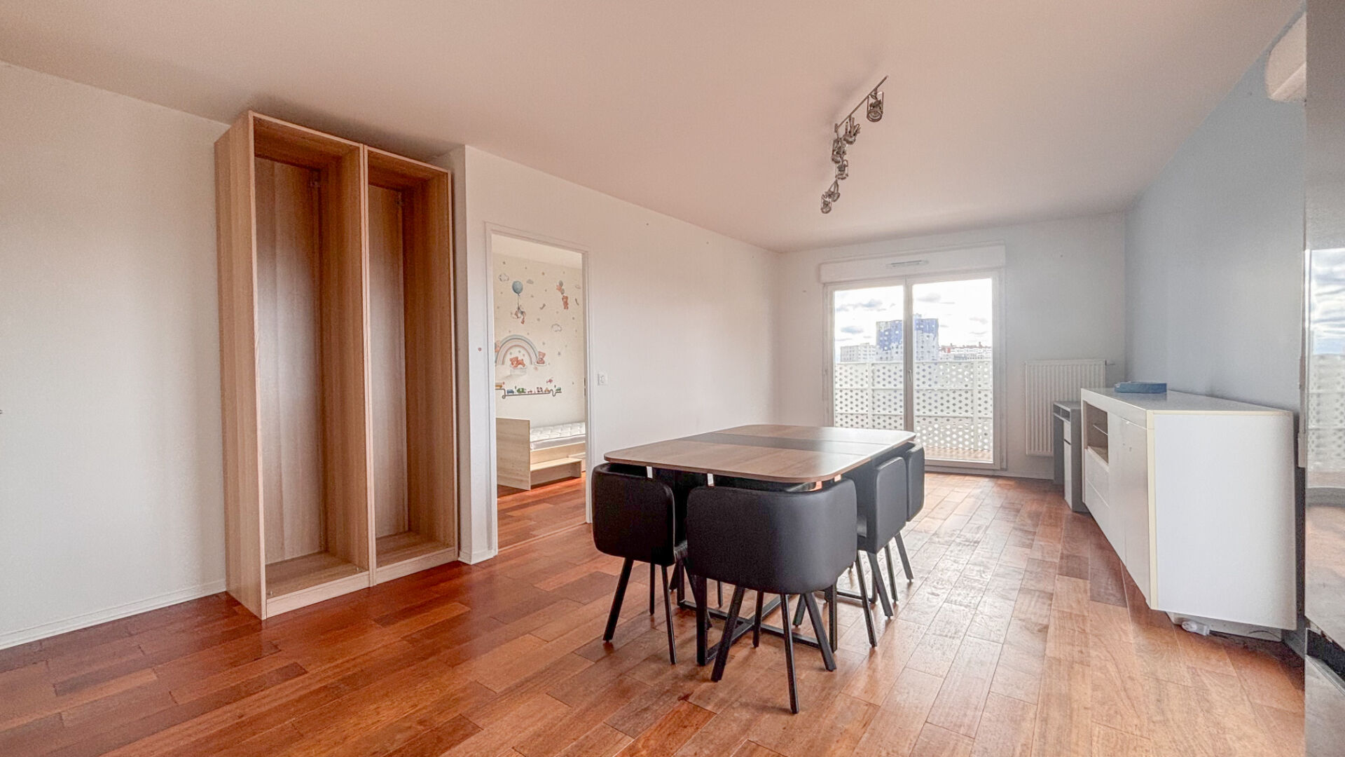 ... une cuisine moderne ouverte, entièrement aménagée et équipée, trois chambres avec placards, une sal...