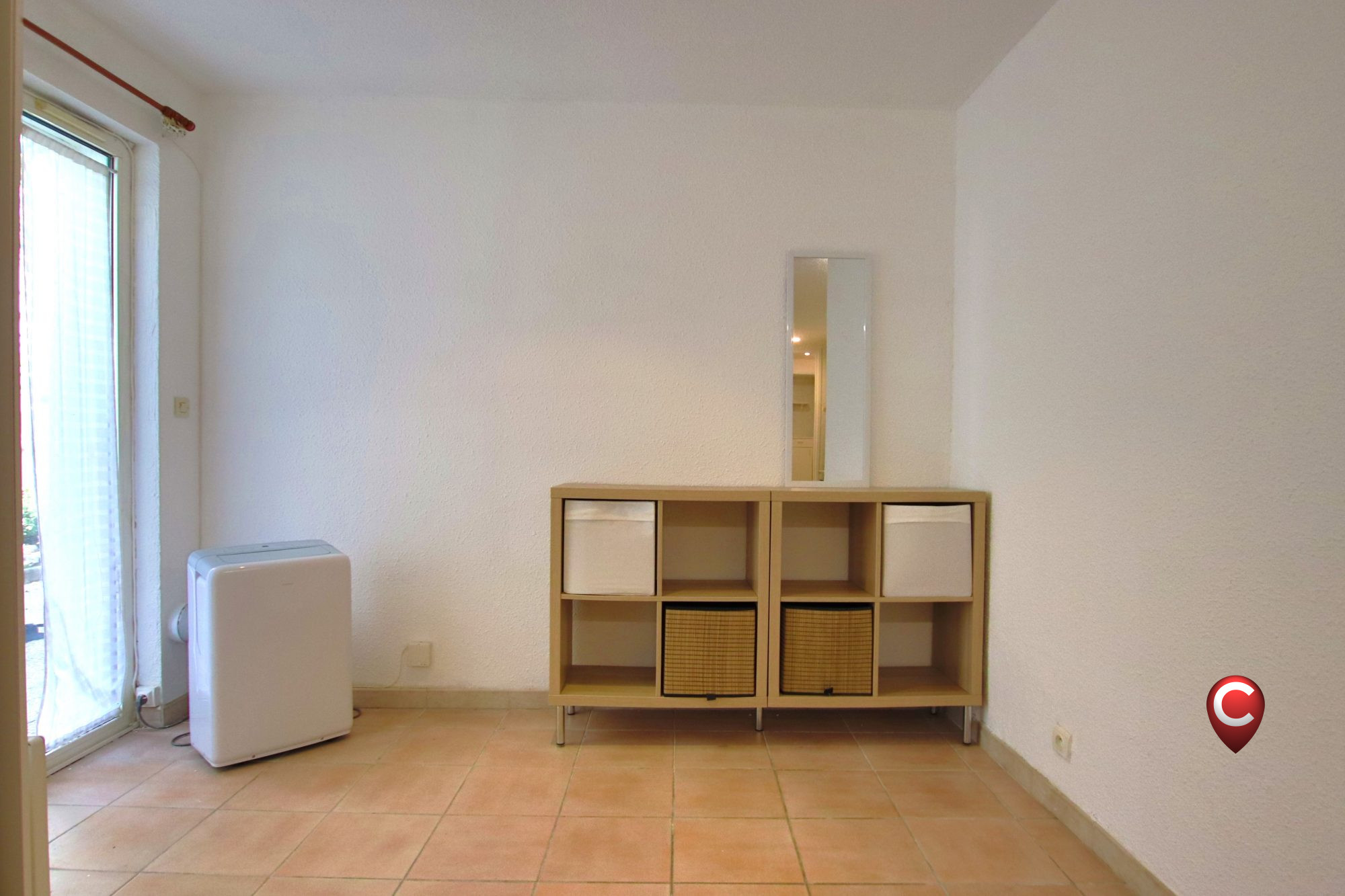 ...Dans une résidence de standing et sécurisée, grand F1 en rez-de-jardin meublé de 34 m2 avec...