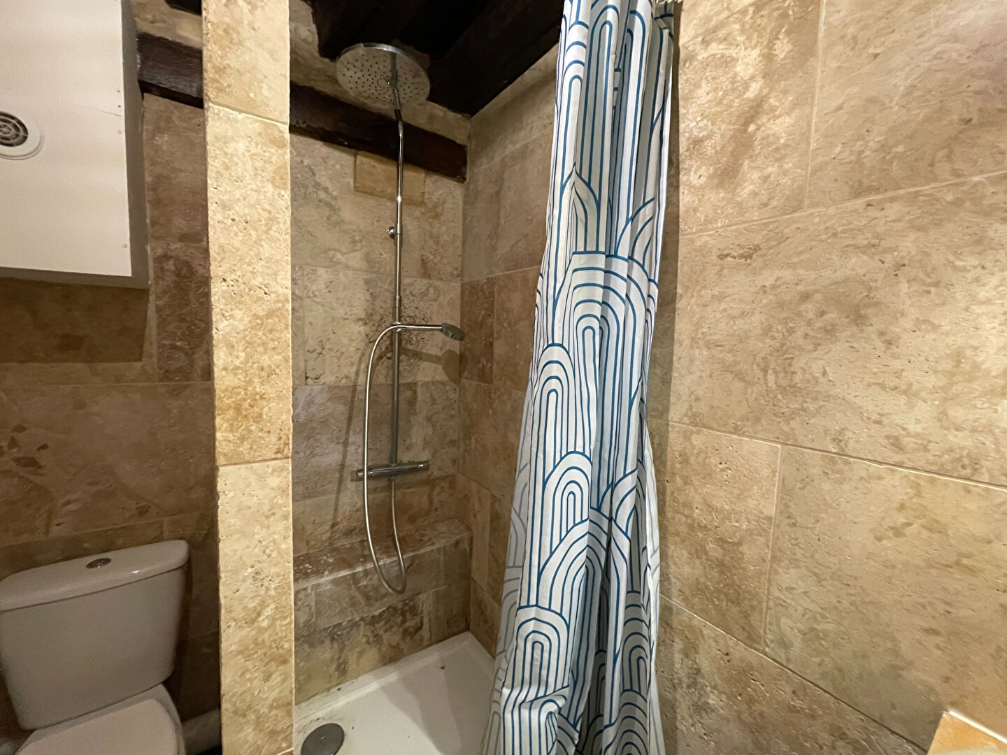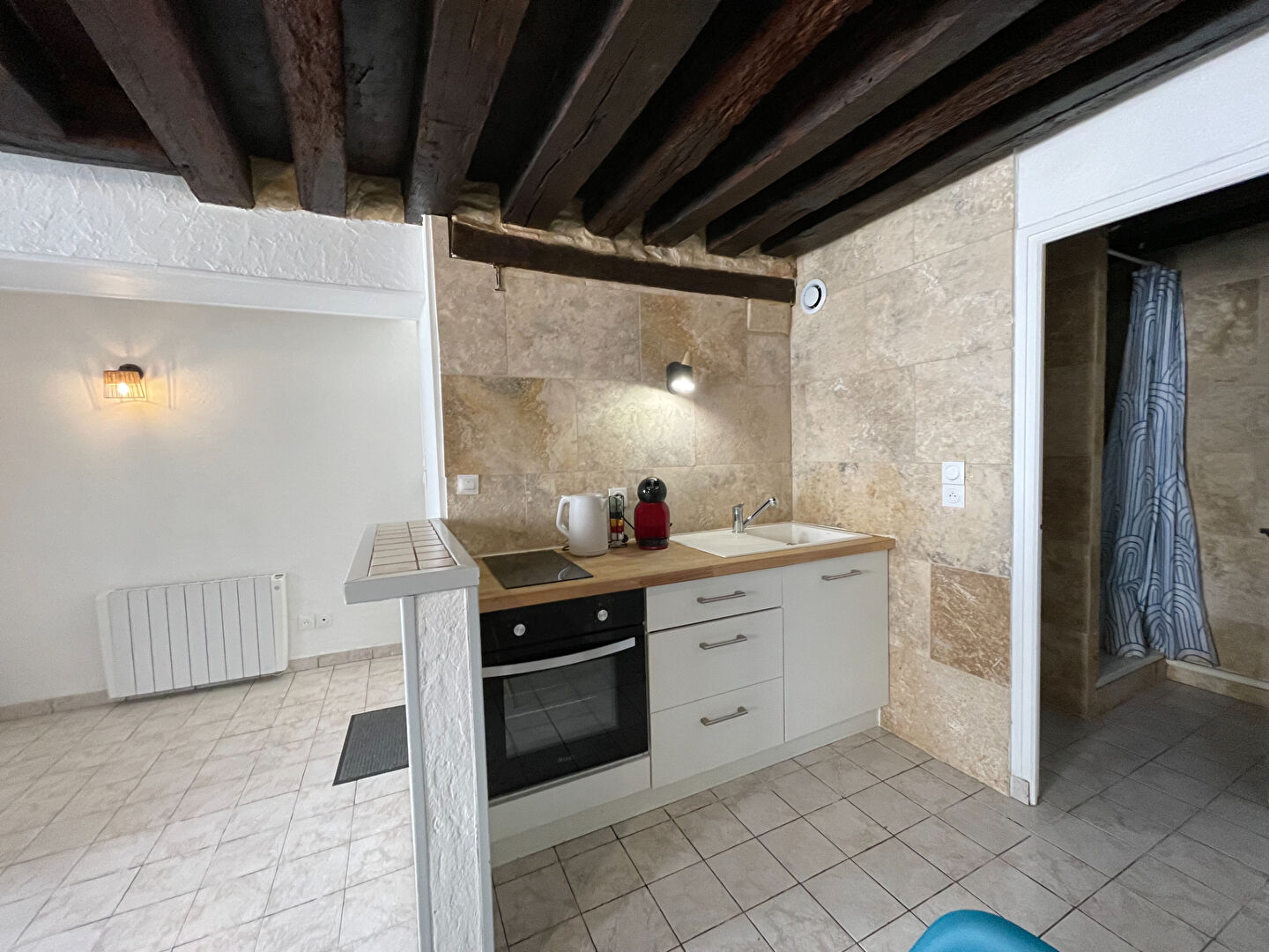 ...Cet appartement meublé est composé de : entrée, pièce de vie de caractère ouverte sur cuisine...