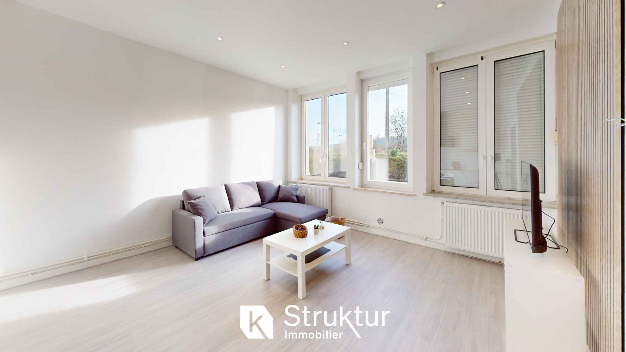 ...Il comprend un hall d'entrée avec placard aménagé, un lumineux espace de vie de 38 m2 avec...