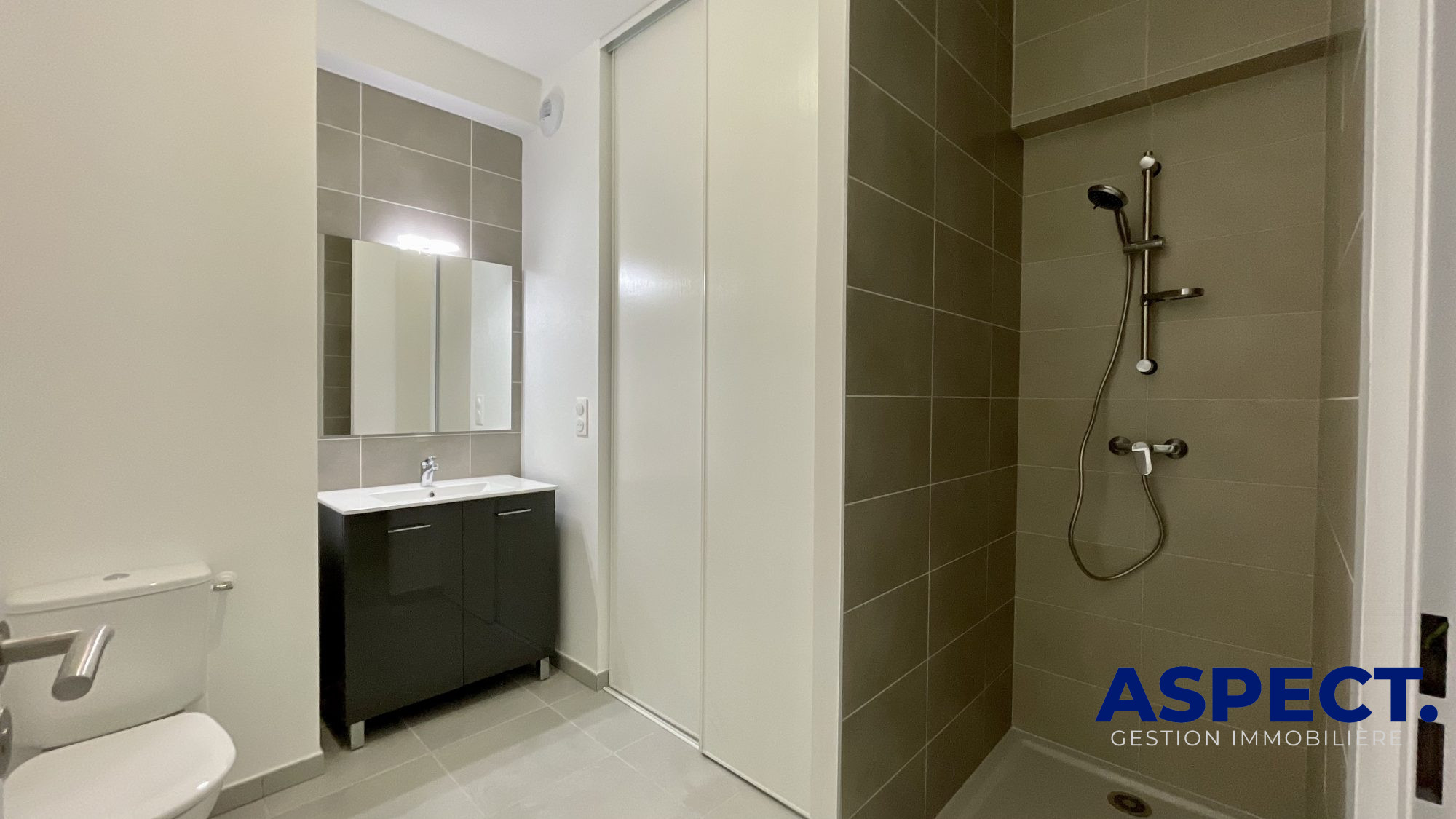 ... - Salle d'eau moderne équipée d'une douche à l'italienne, sèche serviette et WC.