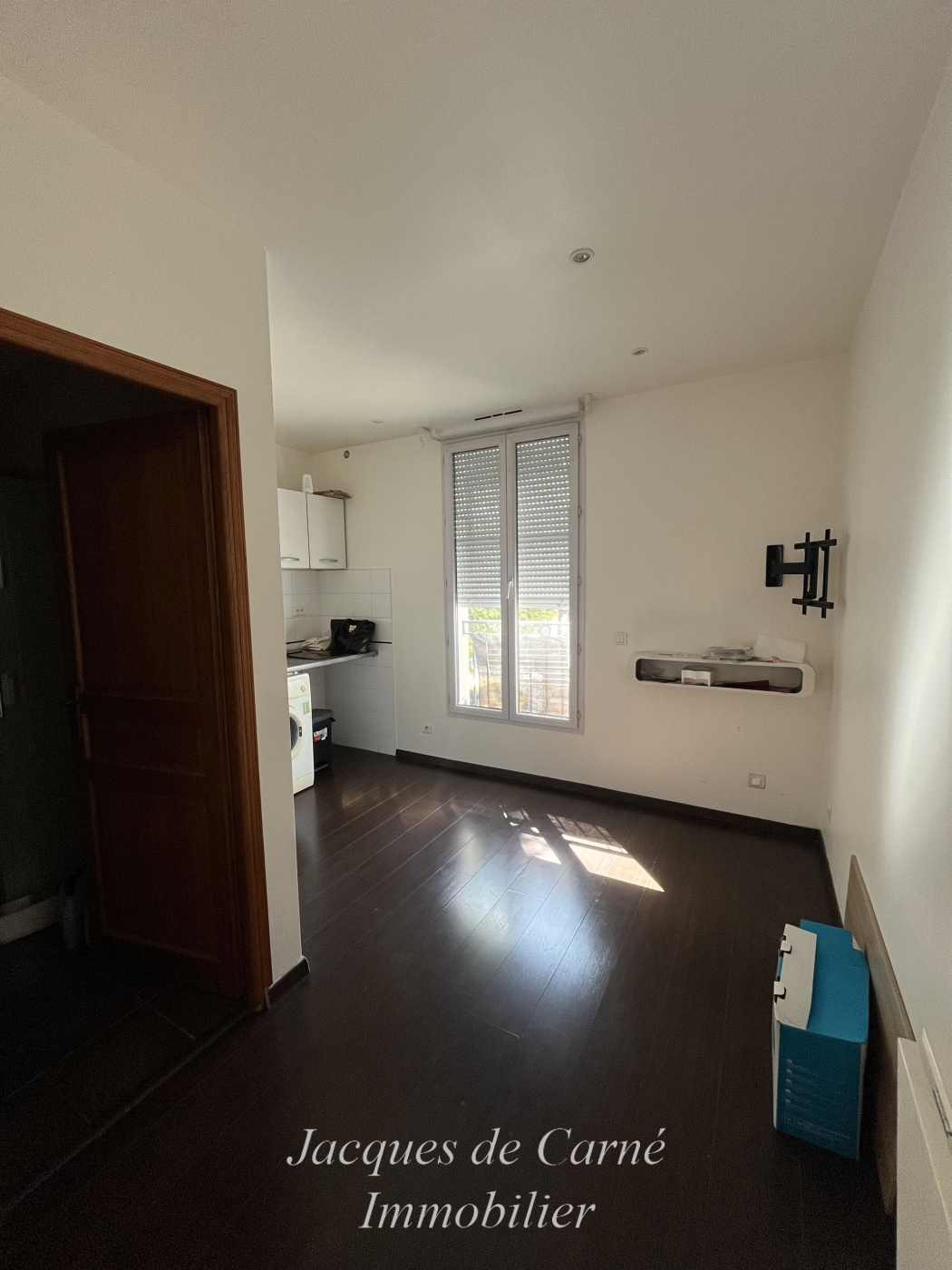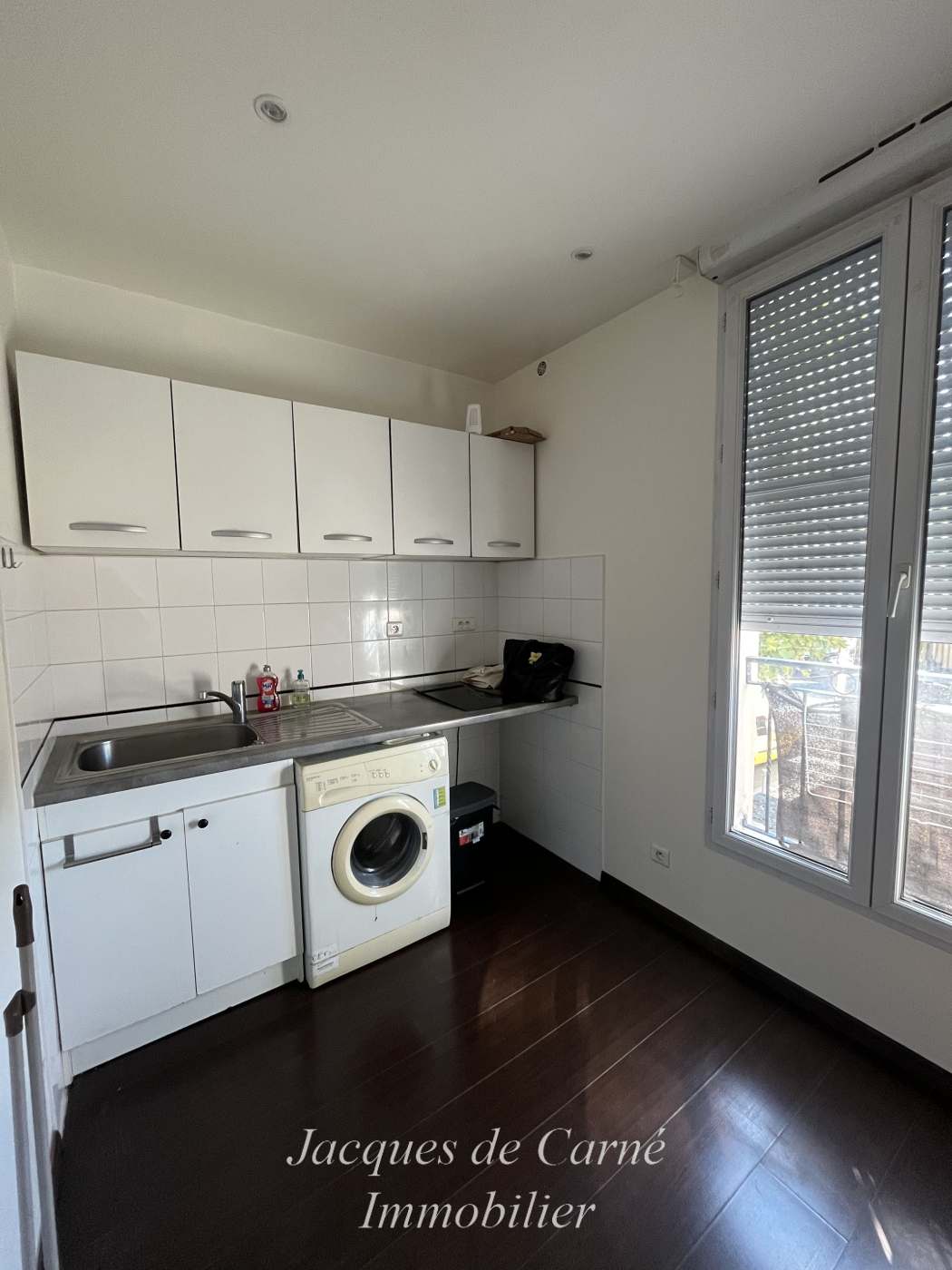 ... de cuisson, placards bas et hauts. Salle de douche avec WC classique. La chambre donne sur rue avec...