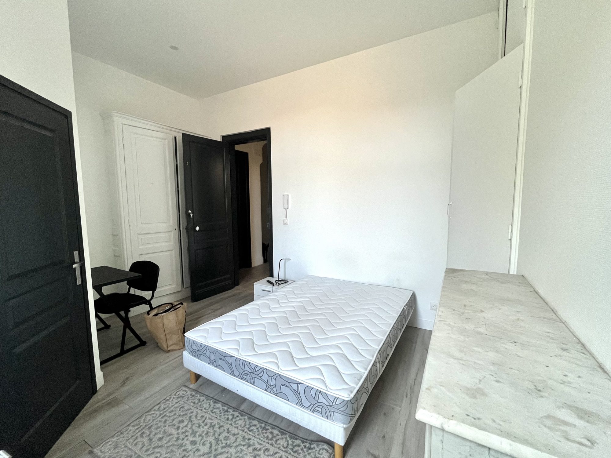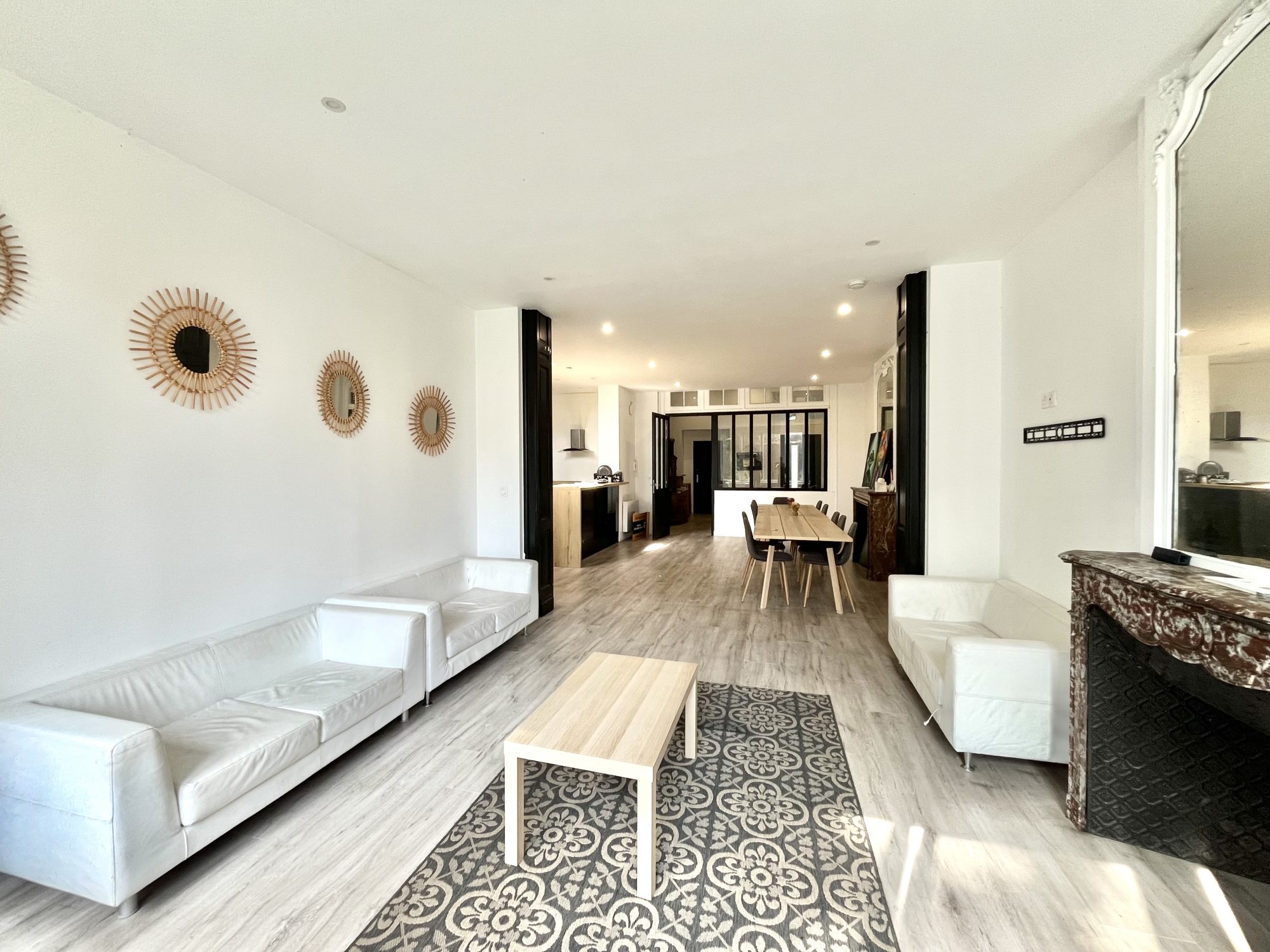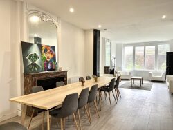 ... charme de l'ancien a été préservé : plafonds de 4 mètres de hauteur, moulures élégantes et cheminée...