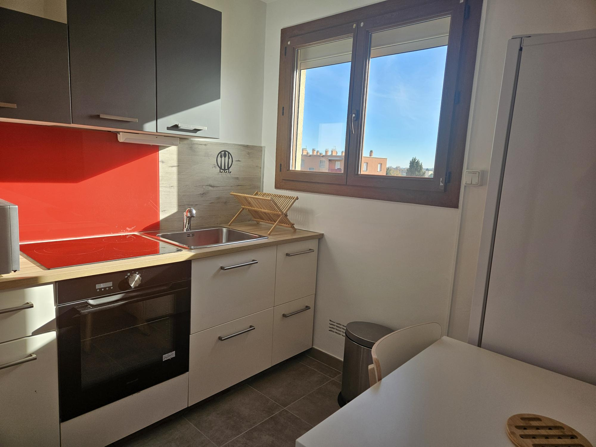 ...APPARTEMENT AU 3ème ETAGE AVEC VUE DEGAGEE, CLIMATISEE, CUISINE AMENAGEE ET EQUIPEE (PLAQUES...