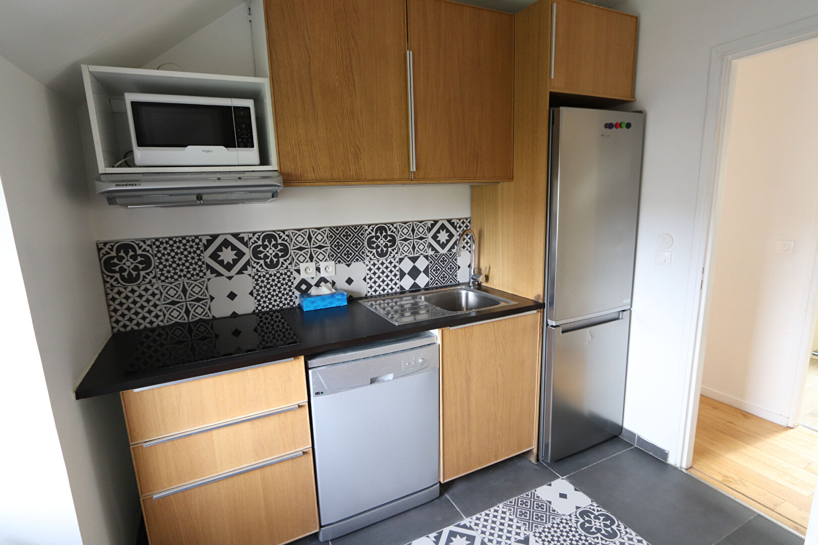 ...Il s'agence comme ceci : pièce de vie, cuisine aménagée et équipée (avec lave-linge et...