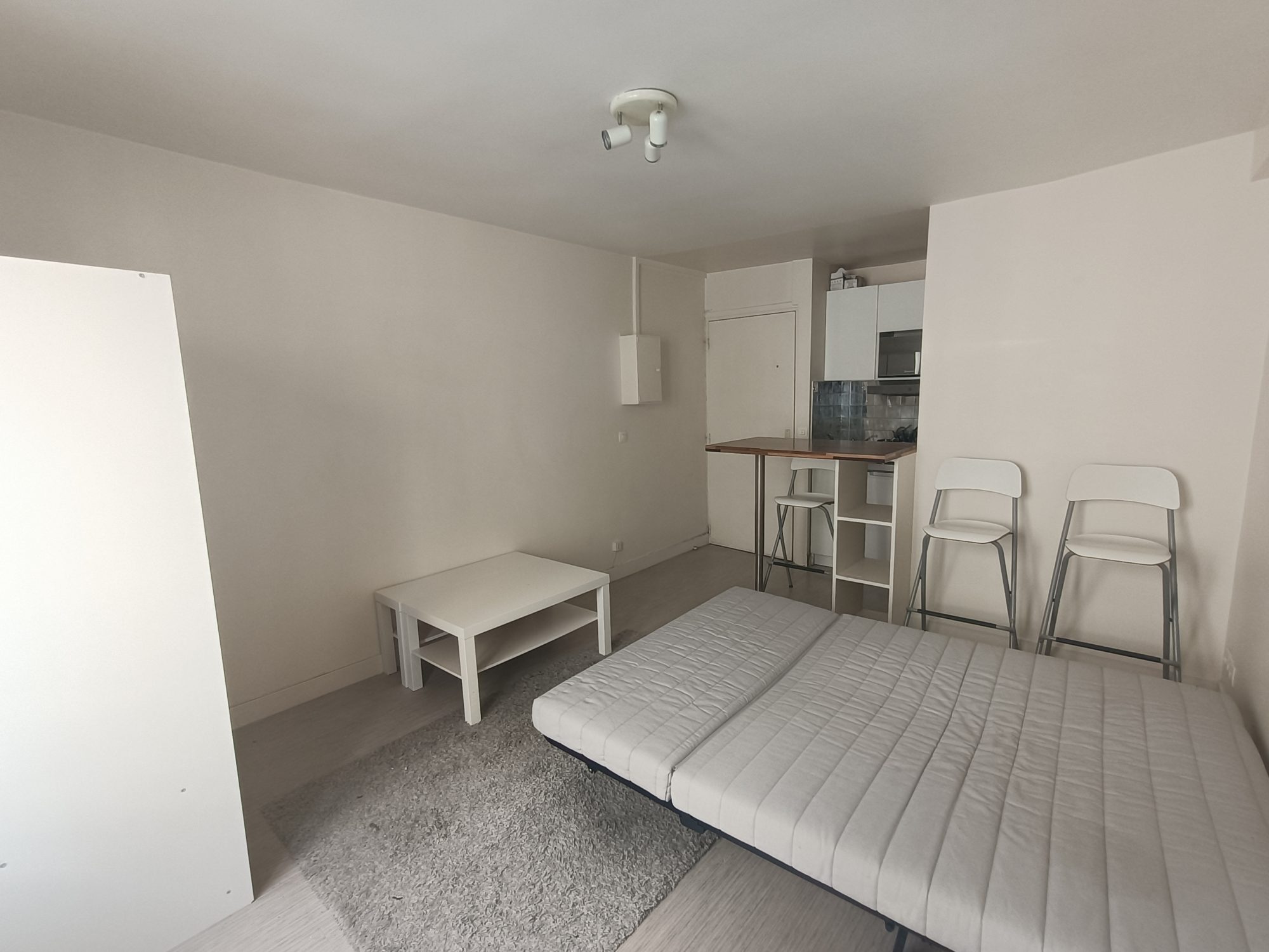...Un studio meublé composé d'une entrée avec coin cuisine aménagée et équipée, une pièce principale...
