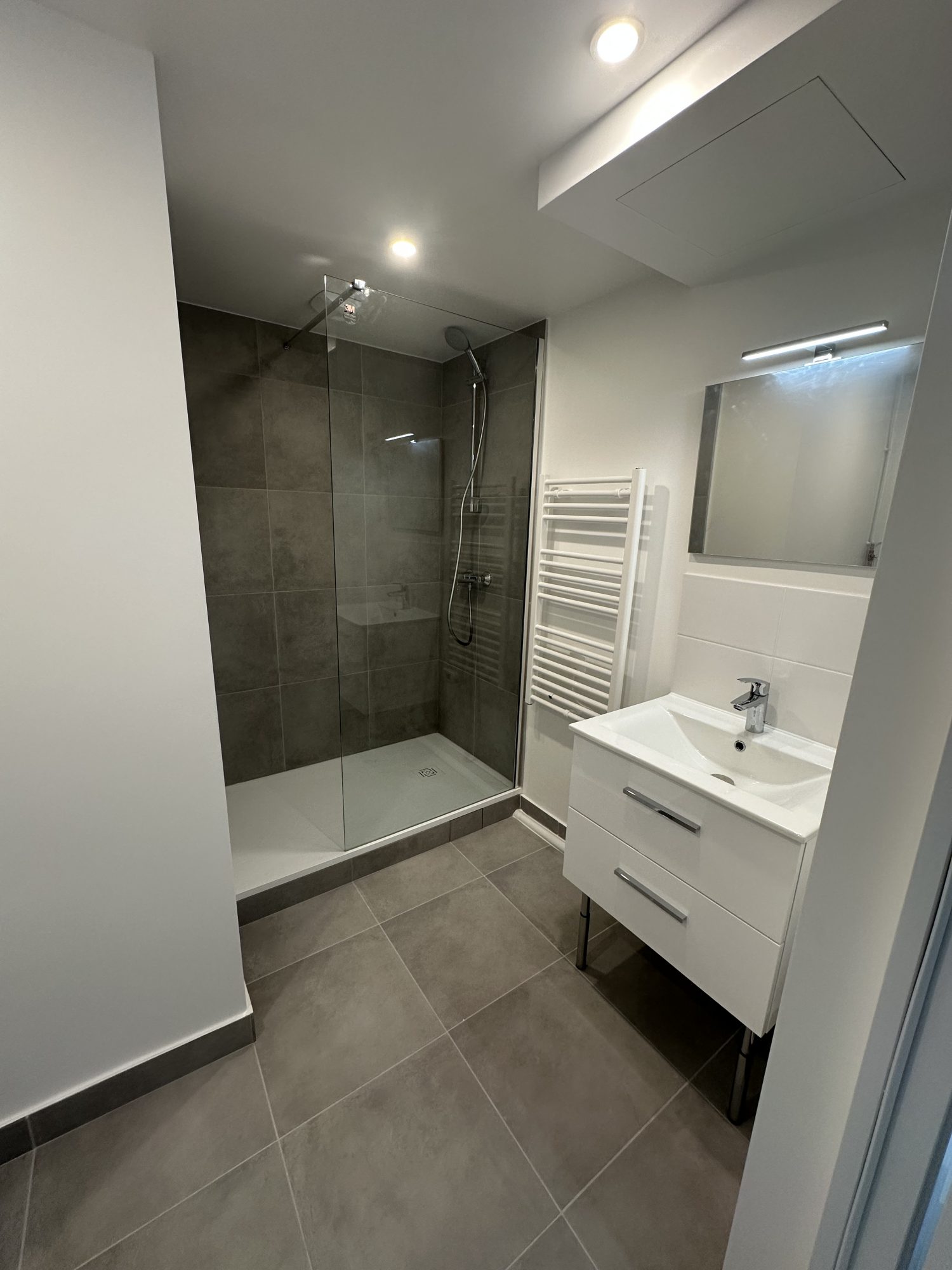 ...Il se compose d'une entrée avec grand placard, d'un séjour / salon avec cuisine américaine...