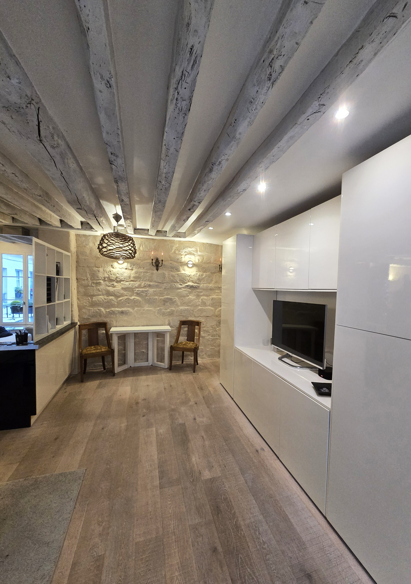 ...Appartement calme et charmant avec son mur en pierre et ses poutres apparentes, bénéficiant...