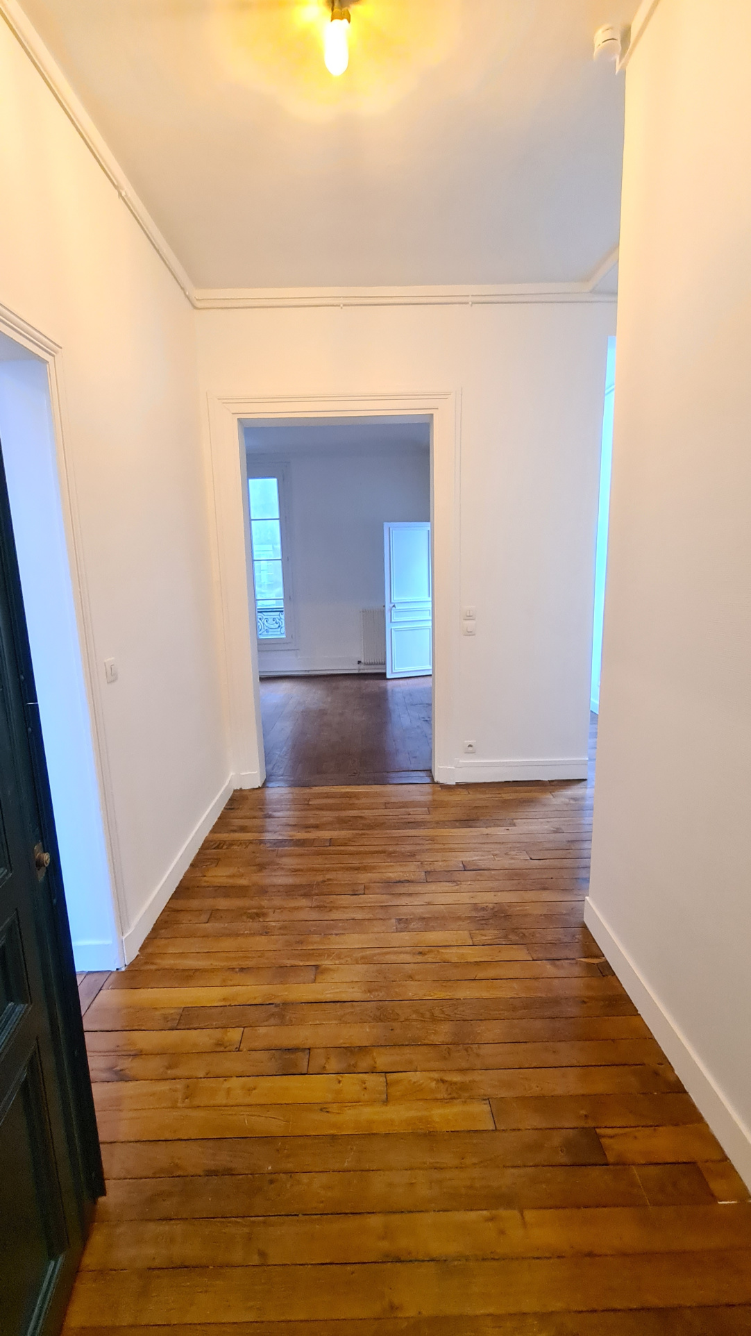 ...Charme de l'ancien, avec parquet massif en pointe de Hongrie, moulures et 3 mètres de hauteur...