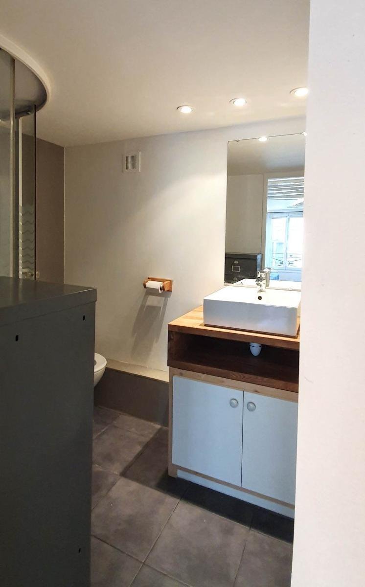 ...L'entrée se compose d'un couloir avec salle de bain équipée d'une baignoire, donnant sur un...