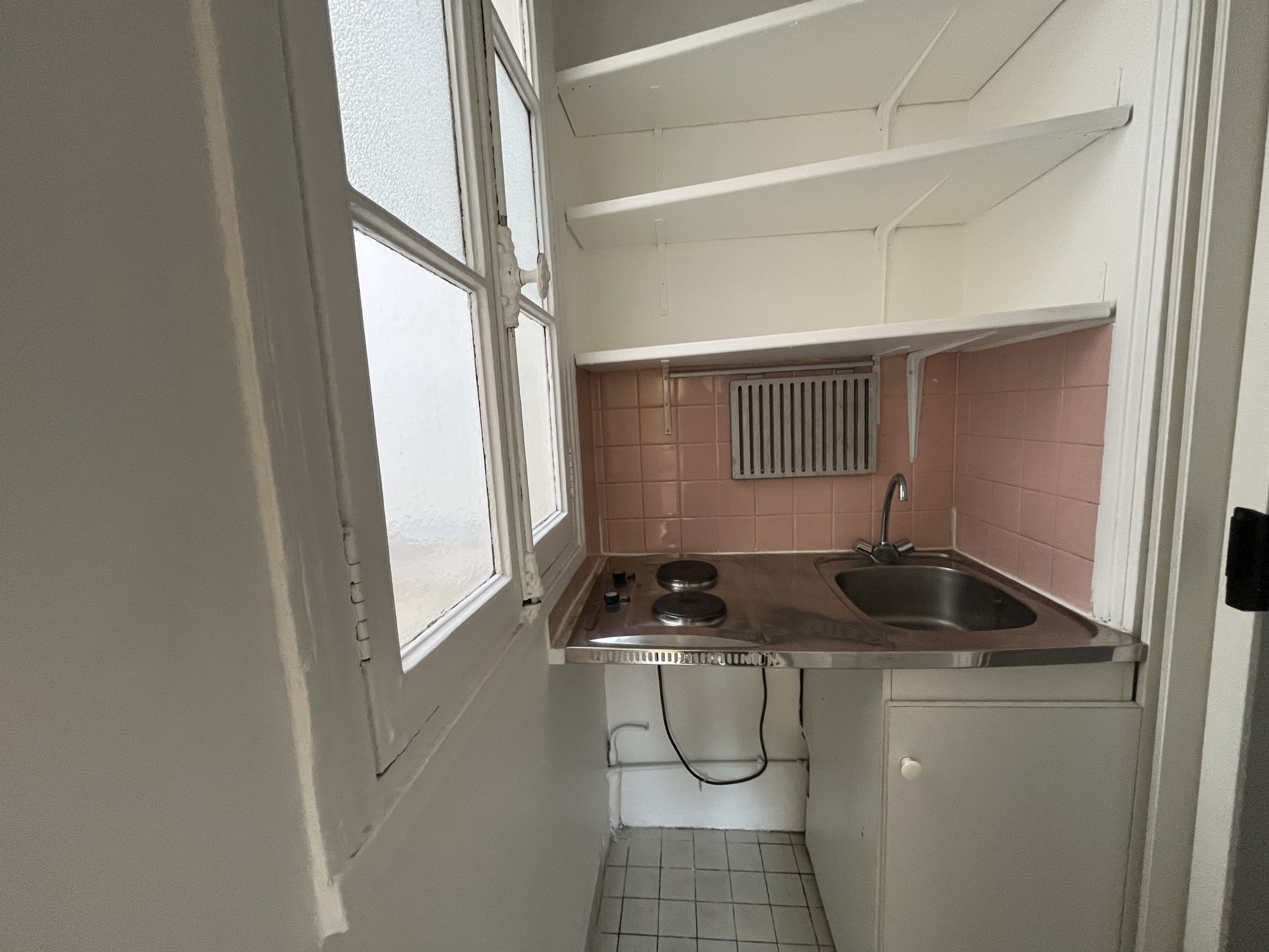 ...Situé au 3ème et dernier étage sur cour (sans ascenseur), ce studio en L offre une organisation...
