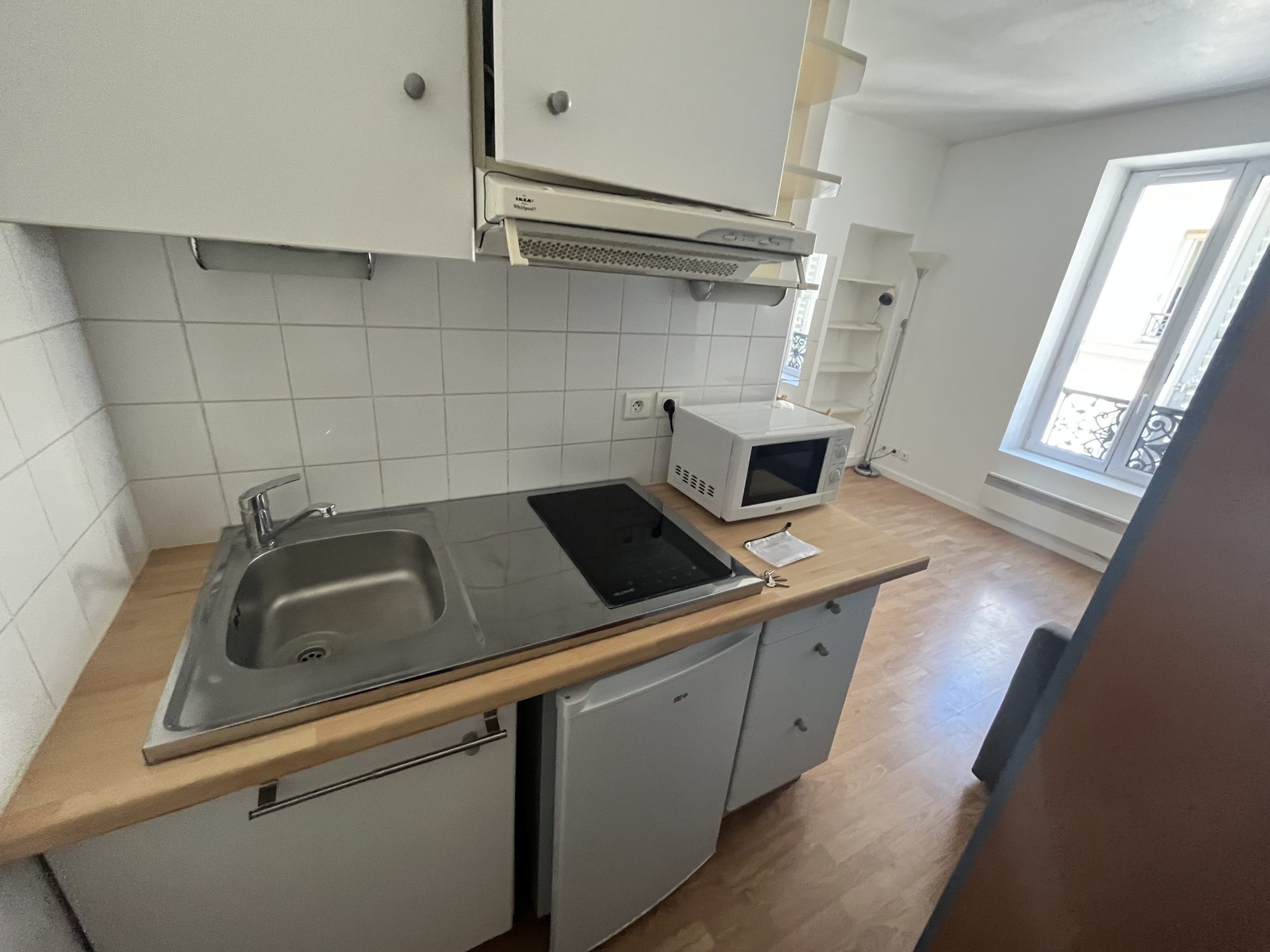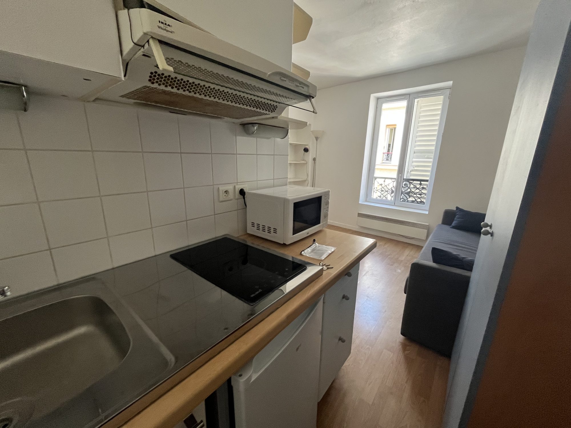 ...Situé au 3ème et dernier étage sur cour (sans ascenseur), ce studio en L offre une organisation...