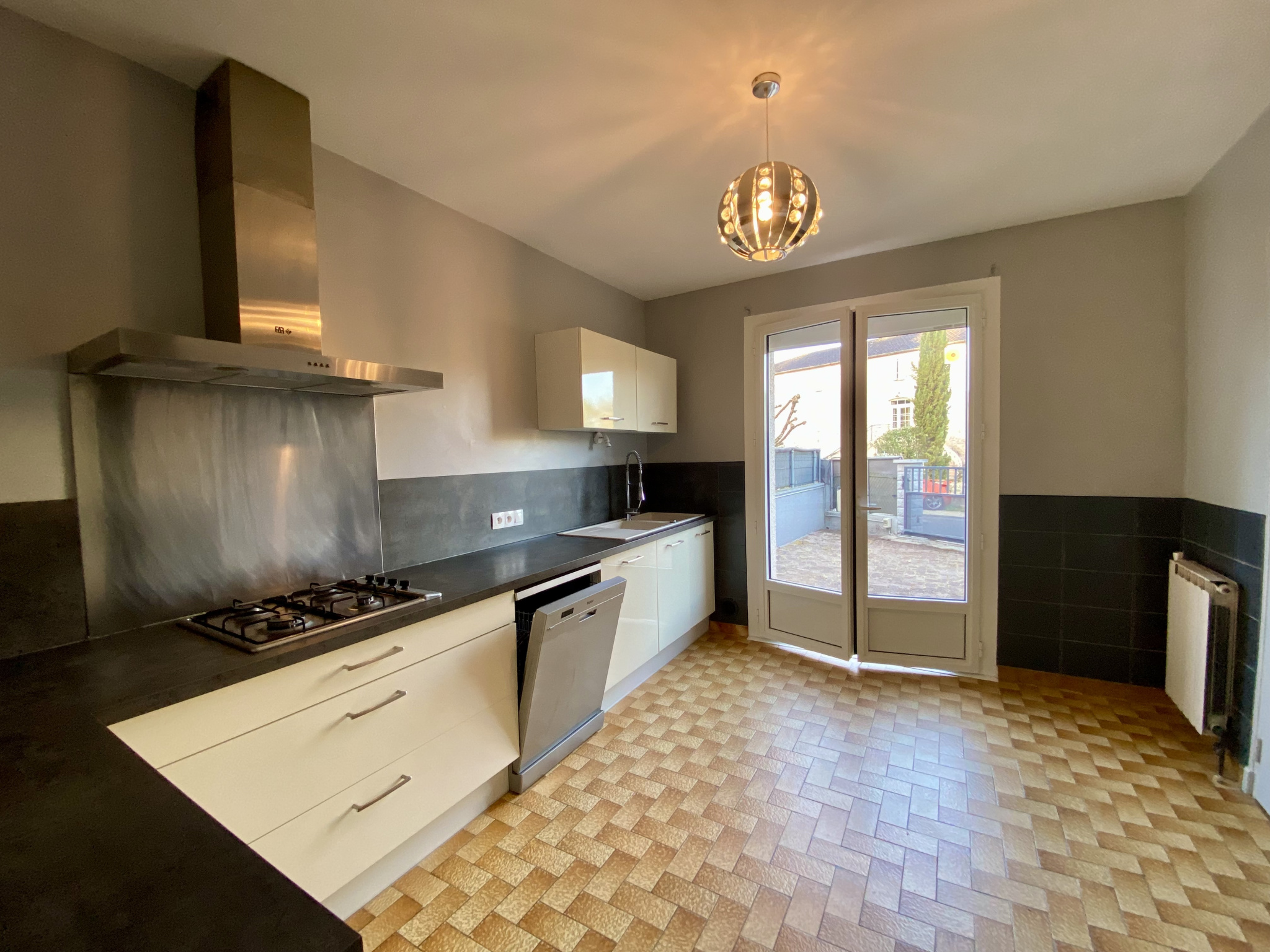 ...Il comprend : une entrée, un salon, une cuisine équipée (plaques, hotte, four, lave vaisselle),...
