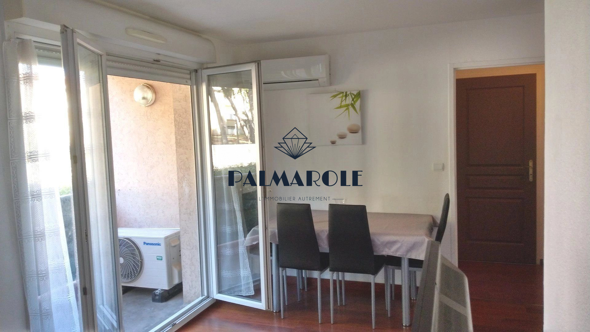 ...Séjour climatisé exposé sud sur vaste terrasse avec belle vue dégagée, entrée avec placards,...