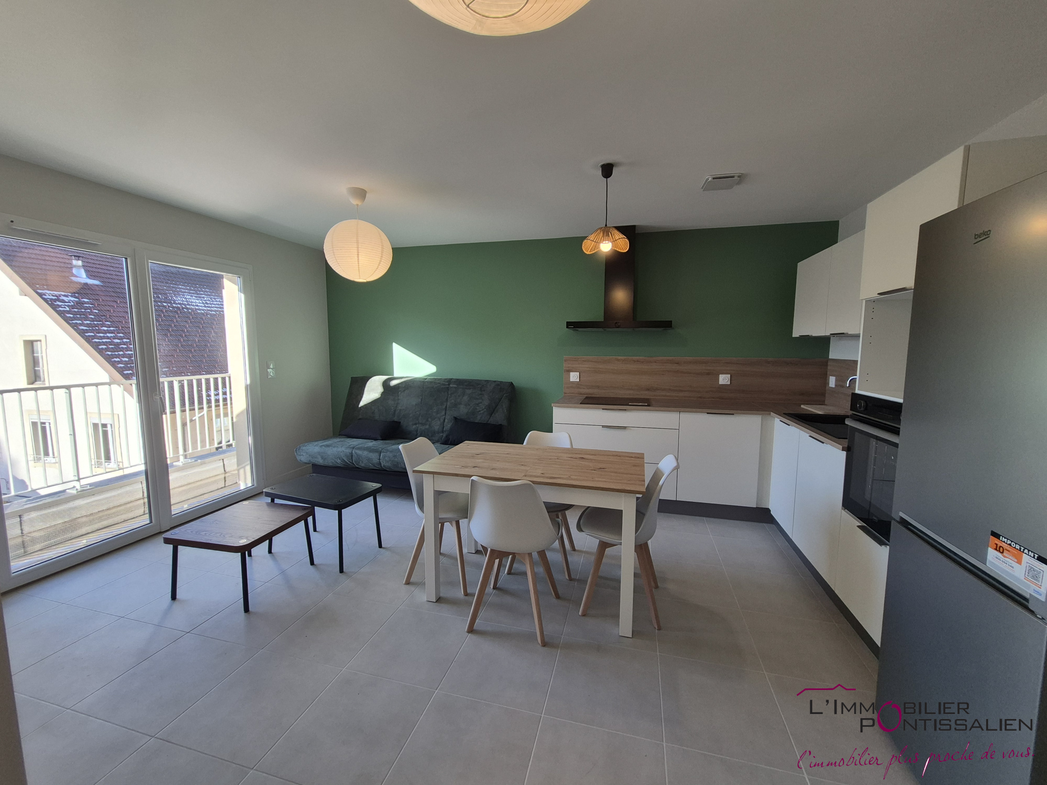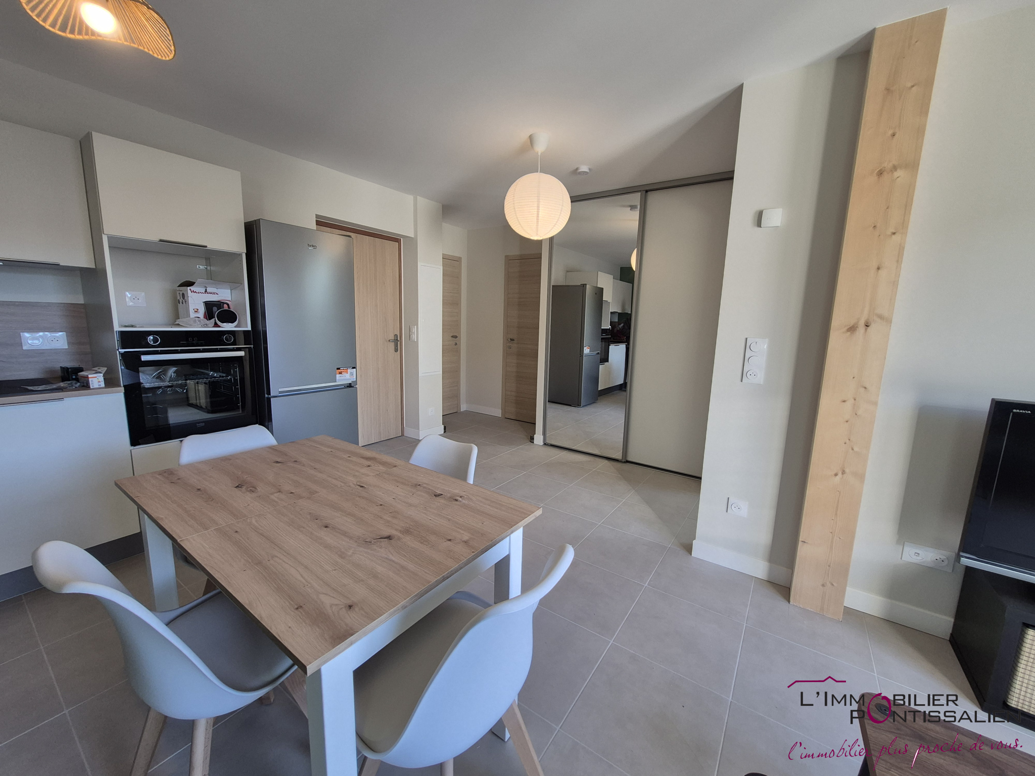 ...Ce logement lumineux et moderne se compose d'une cuisine équipée et aménagée, ouverte sur un...